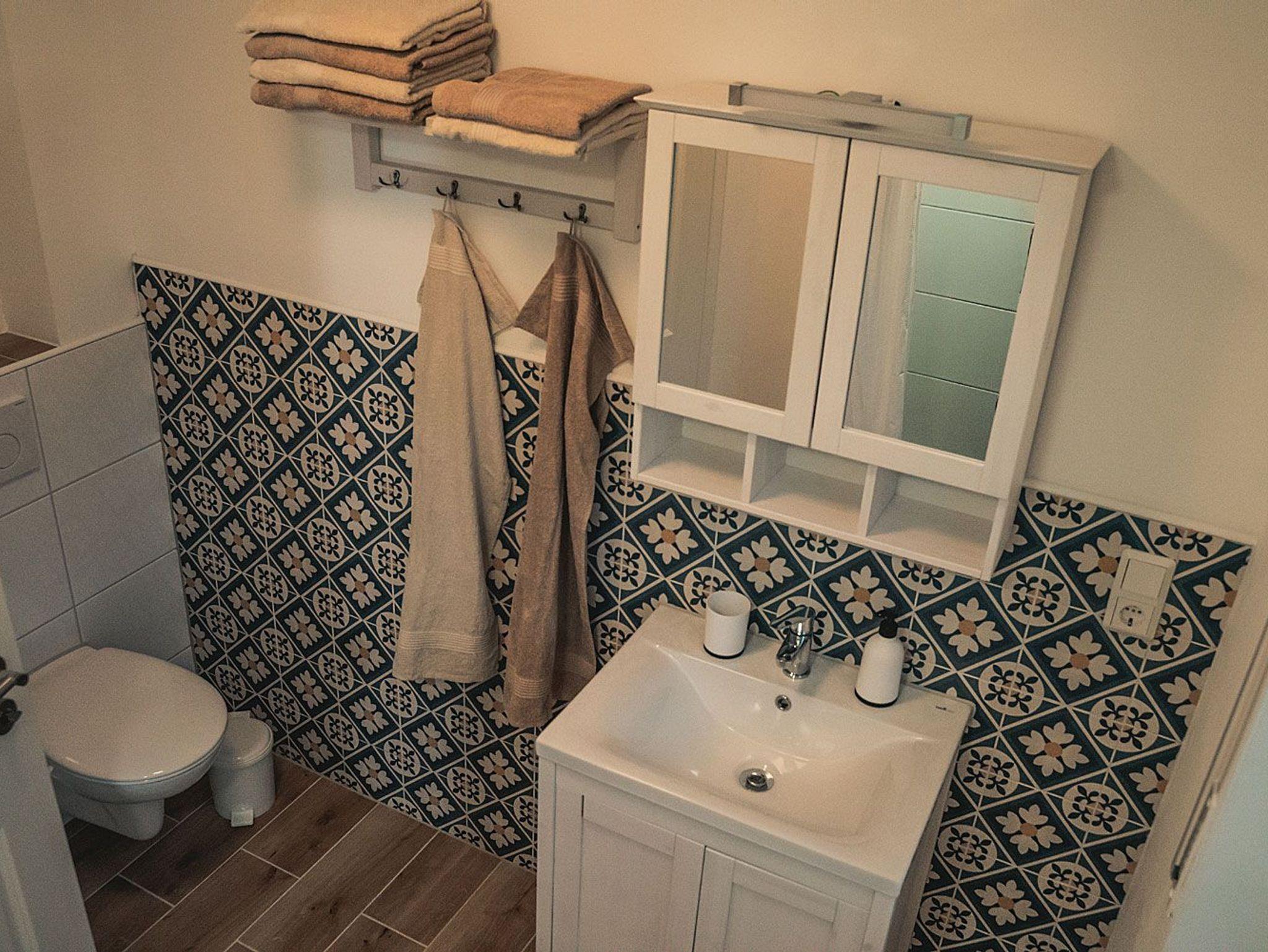 • Ausstattung Badezimmer / Gäste-WC: Fön, Duschvorleger, Gästehandtuch, jeweils 1 Rolle WC-Papier