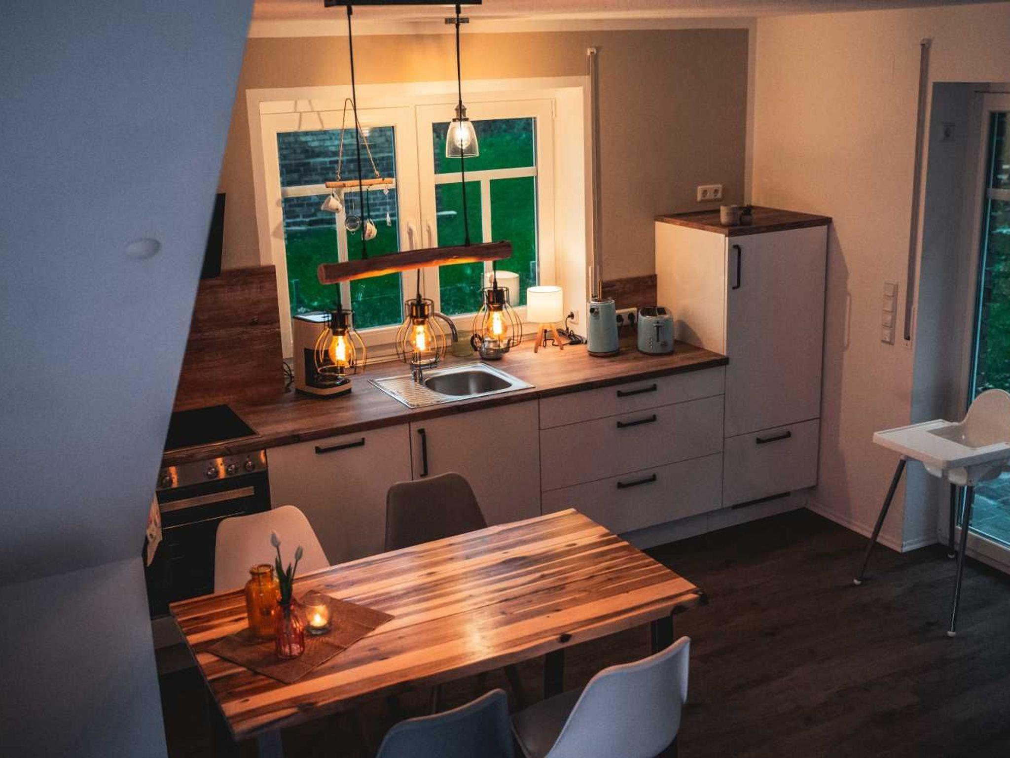 Inklusive Fernseher, Waschmaschine, Fön, W-Lan, Geschirrtücher, komplette Küchenausstattung wie Gewürze, Reinigung