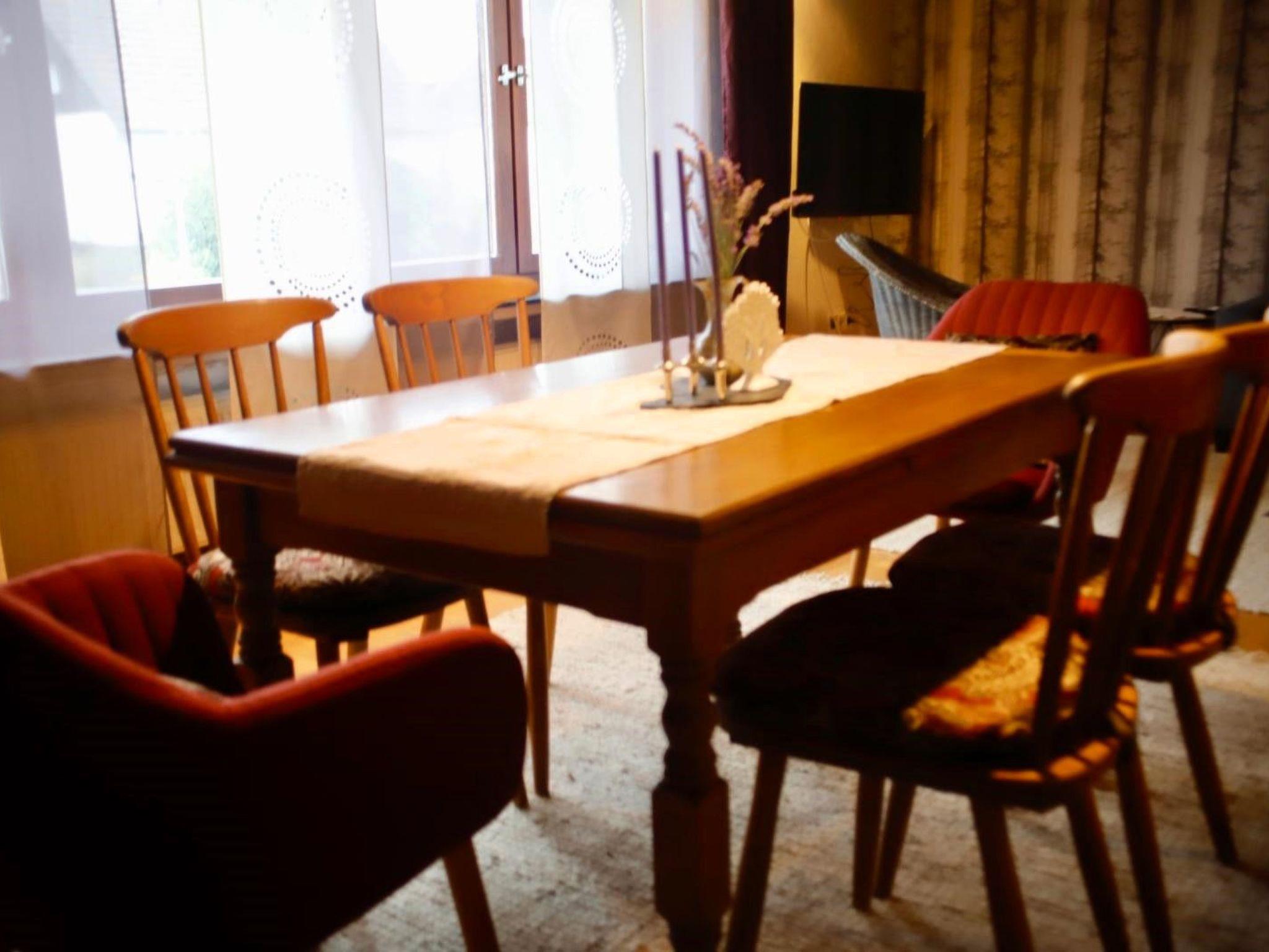 The interior design of the "Aal Obstbeem" holiday flat is a loving blend of old and new. A creative upcycling concept integrates existing elements into a modern ambience. The flat offers three spacious double bedrooms, a separate living/dining room and a fully equipped kitchen with dishwasher, cooker, coffee machine, kettle, microwave and toaster. A spacious shower room and a guest WC round off the offer. A baby cot is available for the youngest guests if booked in advance.