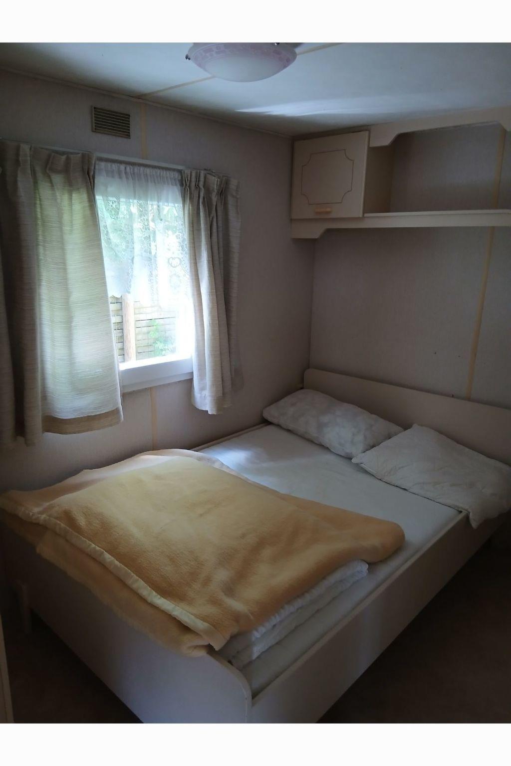 Inside, the mobile home boasts practical and comfortable furnishings to make your stay as pleasant as possible. There is a filter coffee machine to sweeten your mornings, while a kettle and mini oven will meet your culinary needs. For communal use, you will find both a washing machine and tumble dryer in the building for added convenience during your stay. The 2-ring hob allows you to prepare simple meals so you can feel right at home.