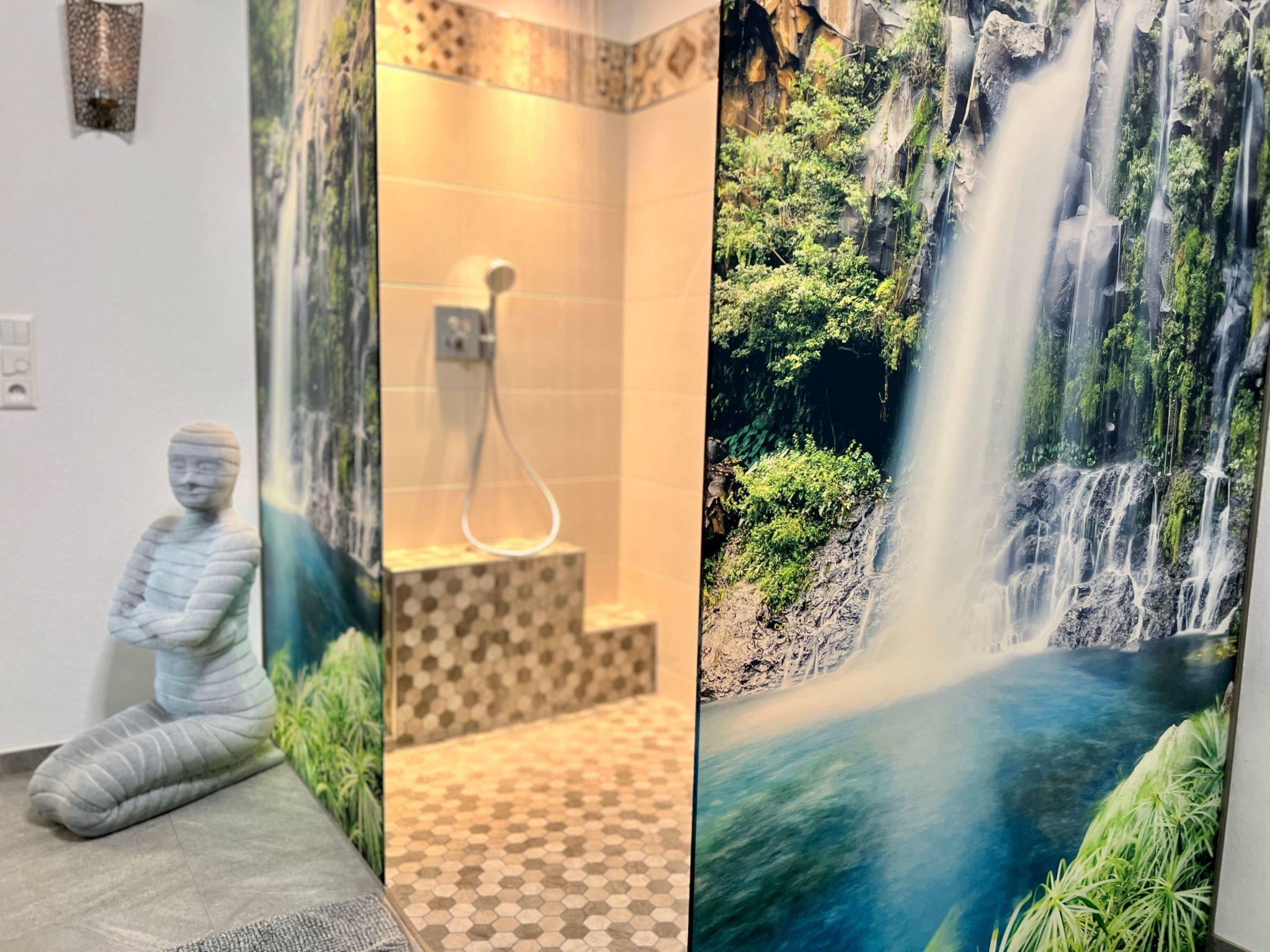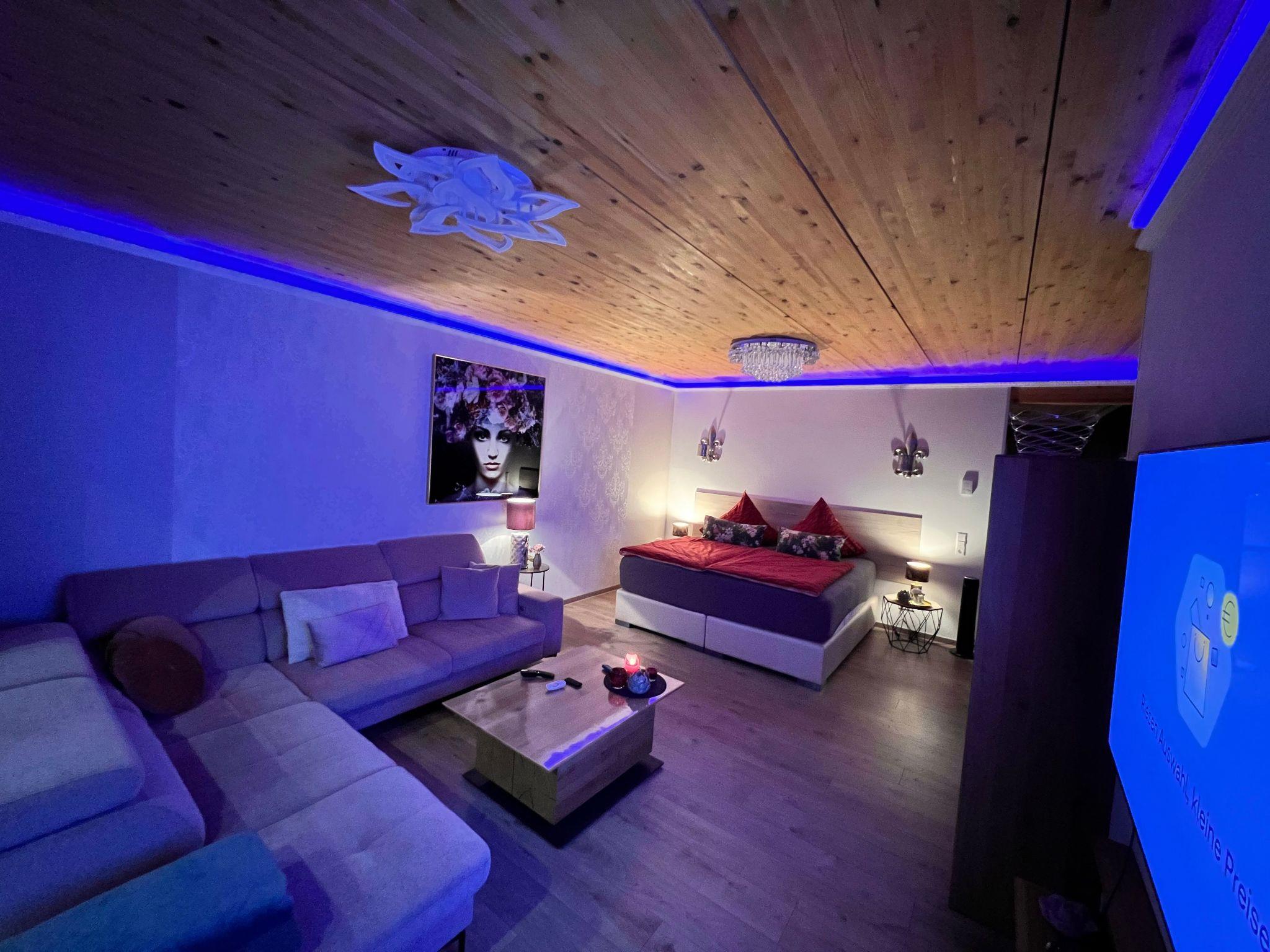 We can say welcome since July 2022. We are very happy to finally be able to welcome guests to our Silberglanz accommodation from July. We have been looking forward to this moment for a long time. In the tranquil village of Habscheid, our elegant holiday flat of over 115 square metres awaits you, complete with a cosy conservatory and an inviting green area. Here you will experience stylish luxury and a homely ambience combined to create the purest feel-good atmosphere. escape from everyday life and enjoy your very own private time for two in our luxury wellness holiday flat Silberglanz. Our cedar wood combination sauna offers an oasis of calm. With digital controls, you can set the temperature to suit your individual preferences. Whether a classic sweat session with infusion or infrared cabin - the inimitable soothing effect of a sauna session is an indispensable part of your wellness holiday in our Silberglanz. Come down, relax, enjoy - here you can experience the pleasure of a wellness holiday in a very private setting, bring your body and mind into harmony and immerse yourself in the soothing warmth and tingling experience of our exclusive whirlpool. In the area of the conservatory directly adjoining the garden, our whirlpool offers you everything you need to start your holiday balanced and refreshed.The barrier-free, handicapped-accessible flat with its high-quality furniture (including Hartmann furniture) in the dining area, living room and hallway offers a living experience in a class of its own. Warm colours and natural materials such as solid spruce wood ceilings provide a special, natural warmth. With underfloor heating throughout, there is constant warmth and not even cold feet stand in the way of relaxation.The LED stucco mouldings with indirect lighting throughout the living area provide the right ambience, which you can adjust to your desired feel-good mood.FURTHER EQUIPMENT AND SERVICE.Our accommodation is fully equipped with everything you need for a relaxing time. There are hand/bath/sauna towels/shower mats/whirlpool and sauna mats/kitchen towels for you on site. Bathrobes are also provided, all at no extra charge. Toilet paper, hand soap as well as kitchen roll and washing-up liquid are also available. Our beautiful modern kitchen is also equipped with everything you need. Pots, pans, plates, cups, champagne, wine, marini, water glasses and more. Cutlery, kettle, toaster, microwave, milk frother and various other things. There is also a fully automatic JURA coffee machine in our kitchen, including coffee beans. We also have various spices ready for you and a selection of different teas. For those who want to enjoy even more luxury, you can even book a chef for our accommodation. He will be able to prepare and serve you almost anything on request. If you are interested, more information is available on request. The chef must be booked separately from us and is NOT included in the accommodation price, it is important to take a break from stress and simply find yourself again. We look forward to seeing you and will be there for our guests as best we can. We, the Heck family, would be delighted to welcome you as our guests.