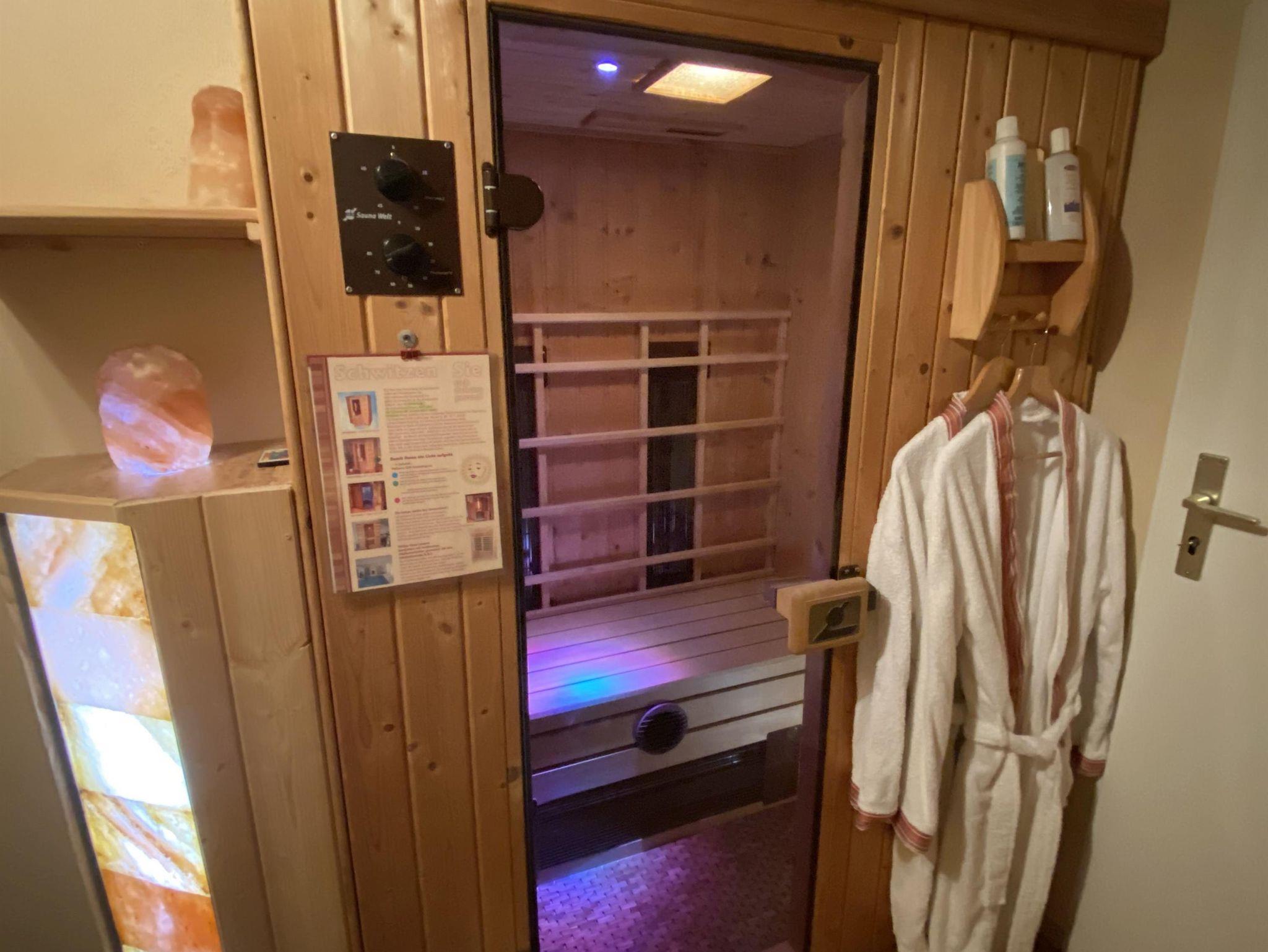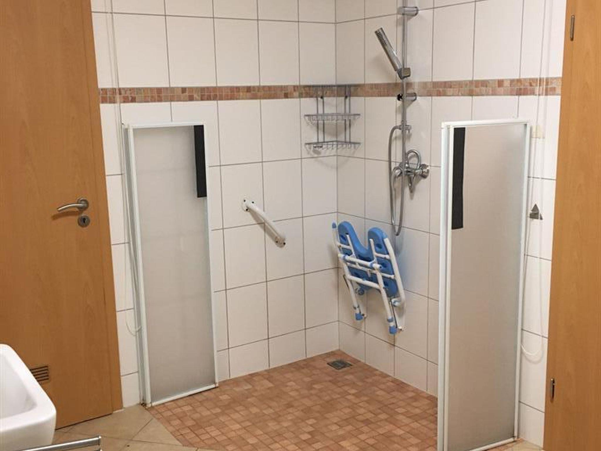 Barrierefreie Ferienwohnung mit schöner Wohnküche, SAT-TV, Stereoanlage, 2 Schlafzimmer (Elternschlafzimmer mit Doppelbett und beidseitig elektrisch vollverstellbarem Lattenrost), Bad mit Dusche/WC, Fahrradgarage, Infrarotsauna