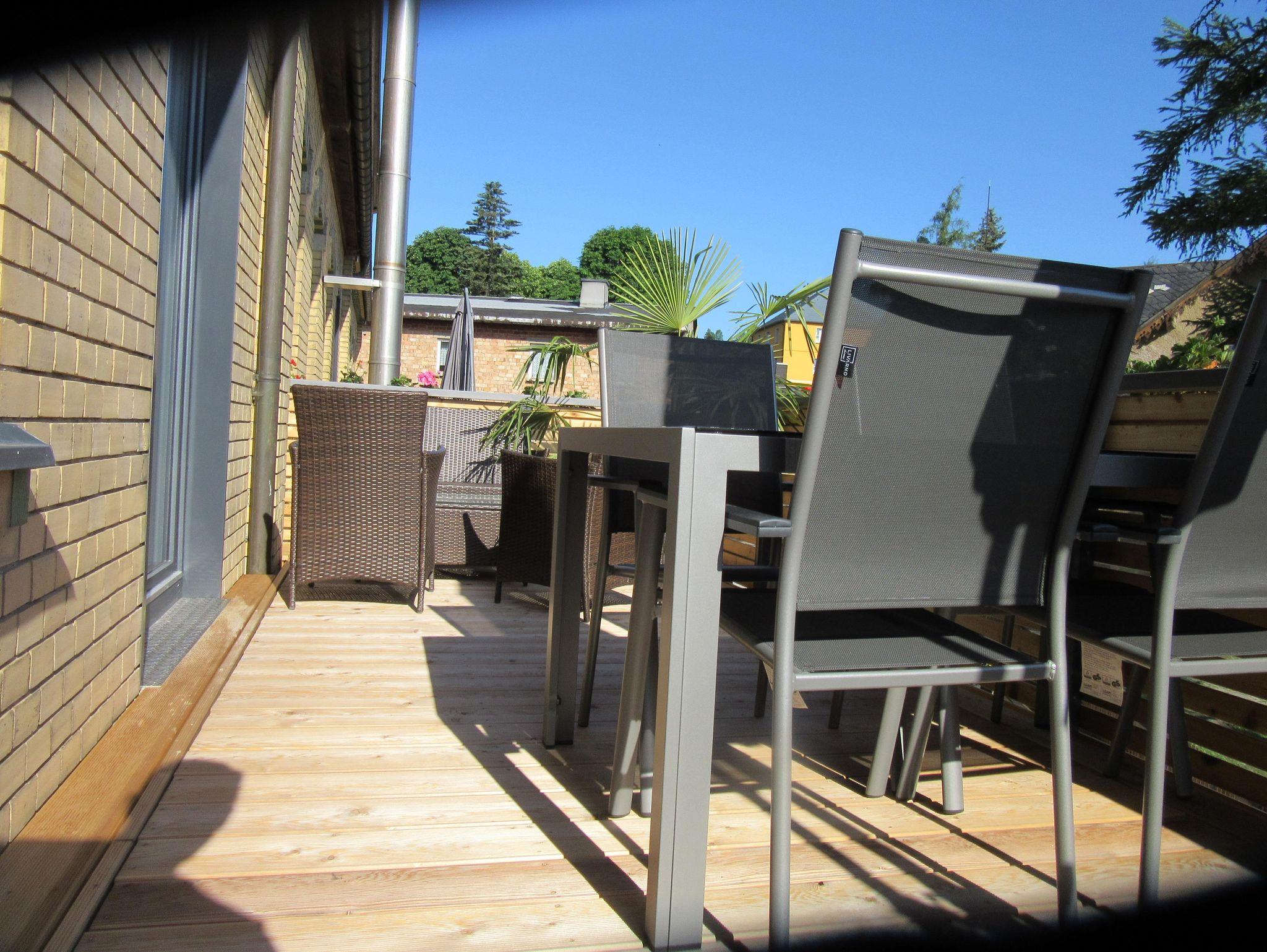 Die Ferienwohnung Nr.:8 mit 72m² Wohnfläche im 1OG. bietet Platz für 1-6 Personen. Das gemütliche Wohnzimmer mit Schlafsofa und Flachbild-TV sowie der sehr große Balkon nördlich ausgerichtet Sonnenschirm und Geflechtmöbel lädt zum Verweilen ein. Die komplett ausgestattete Küche mit Geschirrspüler, Kühlschrank, Herd, Backofen, Mikrowelle, Wasserkocher, Eierkocher, Toaster und Kaffeefilter lässt keine Wünsche offen. Die Wohnung verfügt über 2 Schlafzimmer mit einem Doppelbett. Das Badezimmer mit Dusche ,Spiegel rundet das Gesamtbild ab. Zum Reinigen Ihrer Kleidung stehen eine Waschmaschine und ein Trockner im Haus zur Verfügung. Vor allem im Sommer können Sie entspannte Grillabende verbringen. Bitte beachten Sie, dass Haustiere gegen Aufpreis erlaubt sind. Das WLAN und den Parkplatz vor dem Haus können Sie kostenfrei nutzen.