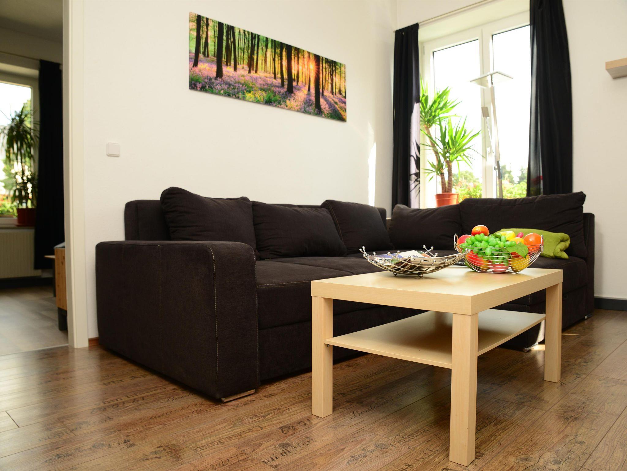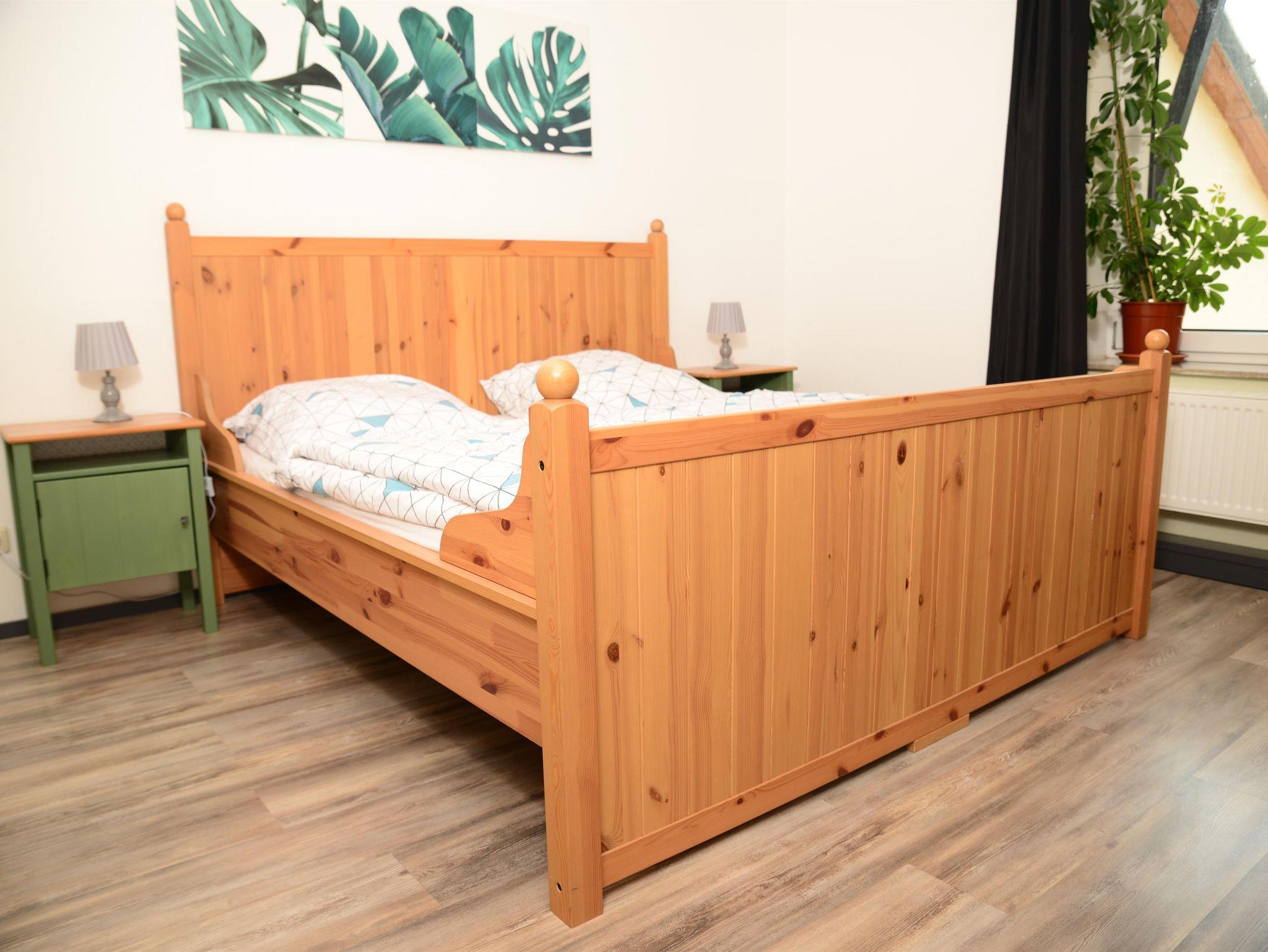 Die Ferienwohnung Nr.:3 mit 65m² Wohnfläche über 1 Etage bietet Platz für 1-6 Personen. Das gemütliche Wohnzimmer mit Schlafsofa und Flachbild-TV lädt zum Verweilen ein. Die komplett ausgestattete Küche mit Geschirrspüler, Kühlschrank, Herd, Backofen, Mikrowelle, Wasserkocher, Eierkocher, Toaster und Kaffeefilter lässt keine Wünsche offen. Die Wohnung verfügt über 2 Schlafzimmern mit einem Doppelbett. Das geräumige Badezimmer mit Dusche, großem Spiegel rundet das Gesamtbild ab. Zum Reinigen Ihrer Kleidung stehen eine Waschmaschine und ein Trockner im Haus zur Verfügung. Vor allem im Sommer können Sie entspannte Grillabende in unserem Garten verbringen. Bitte beachten Sie, dass Haustiere gegen Aufpreis erlaubt sind. Das WLAN und den Parkplatz vor dem Haus können Sie kostenfrei nutzen.