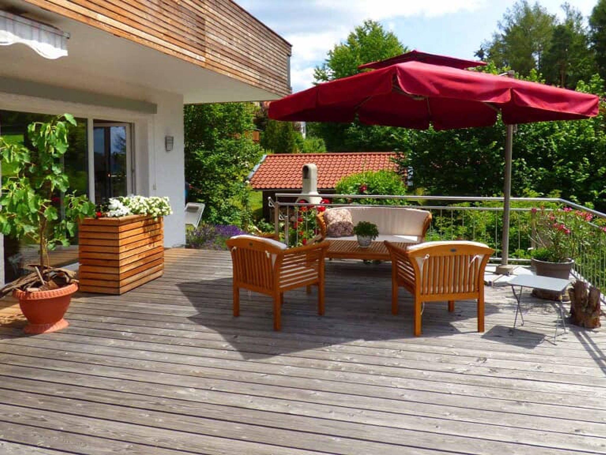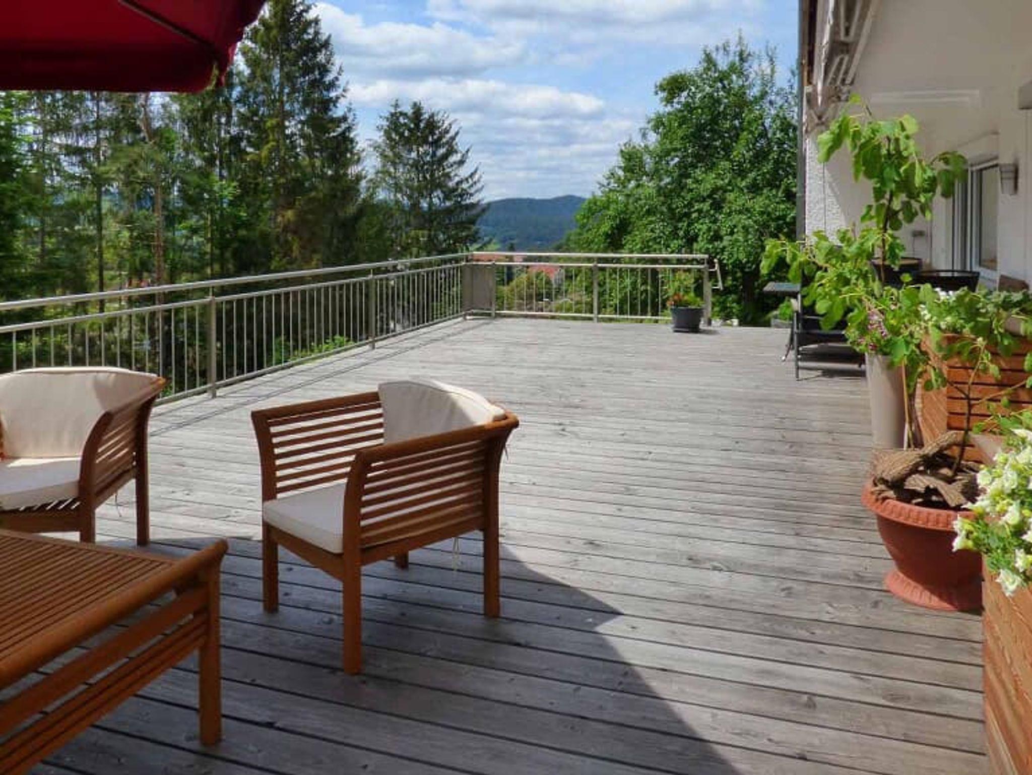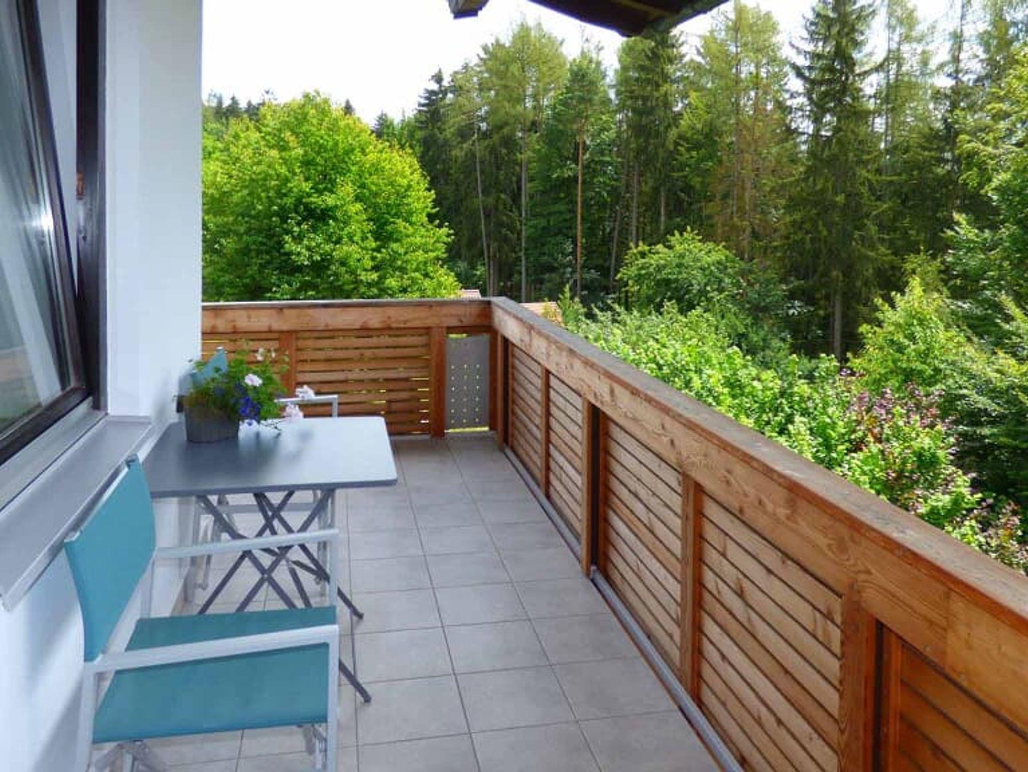 Ach ja, auf dem Balkon gibt es eine Liege und natürlich ein Tisch mit Stühlen mit Blick auf die Rockies, oder die Anden? -Nein- Sie sind im Bayerischen Wald und geniessen die Ruhe.