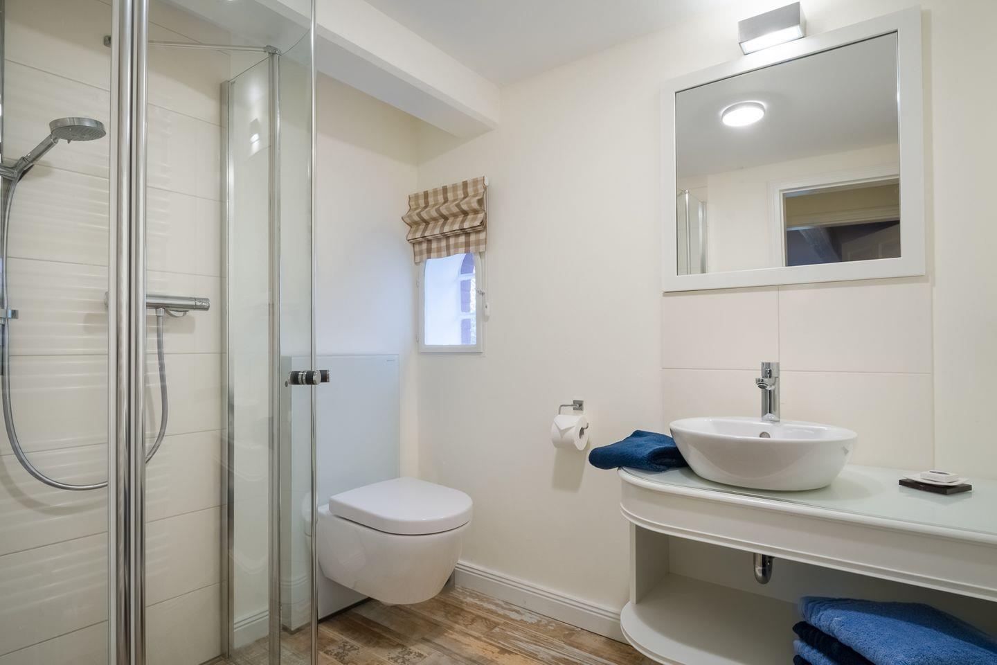 Diese stilvolle Ferienwohnung gliedert sich auf in einen großzügigen Wohn-/ Essraum mit Kaminofen, 1 großes Doppelschlafzimmer mit Verdunklungs-Vorhängen, verstellbaren Lattenrosten, ein Duschbad mit WC und Fußbodenheizung, eine Küche mit Ceranfeld, Backofen, Kaffeemaschine, Toaster, Wasserkocher, sowie eine Süd-West Terrasse mit Bestuhlung.