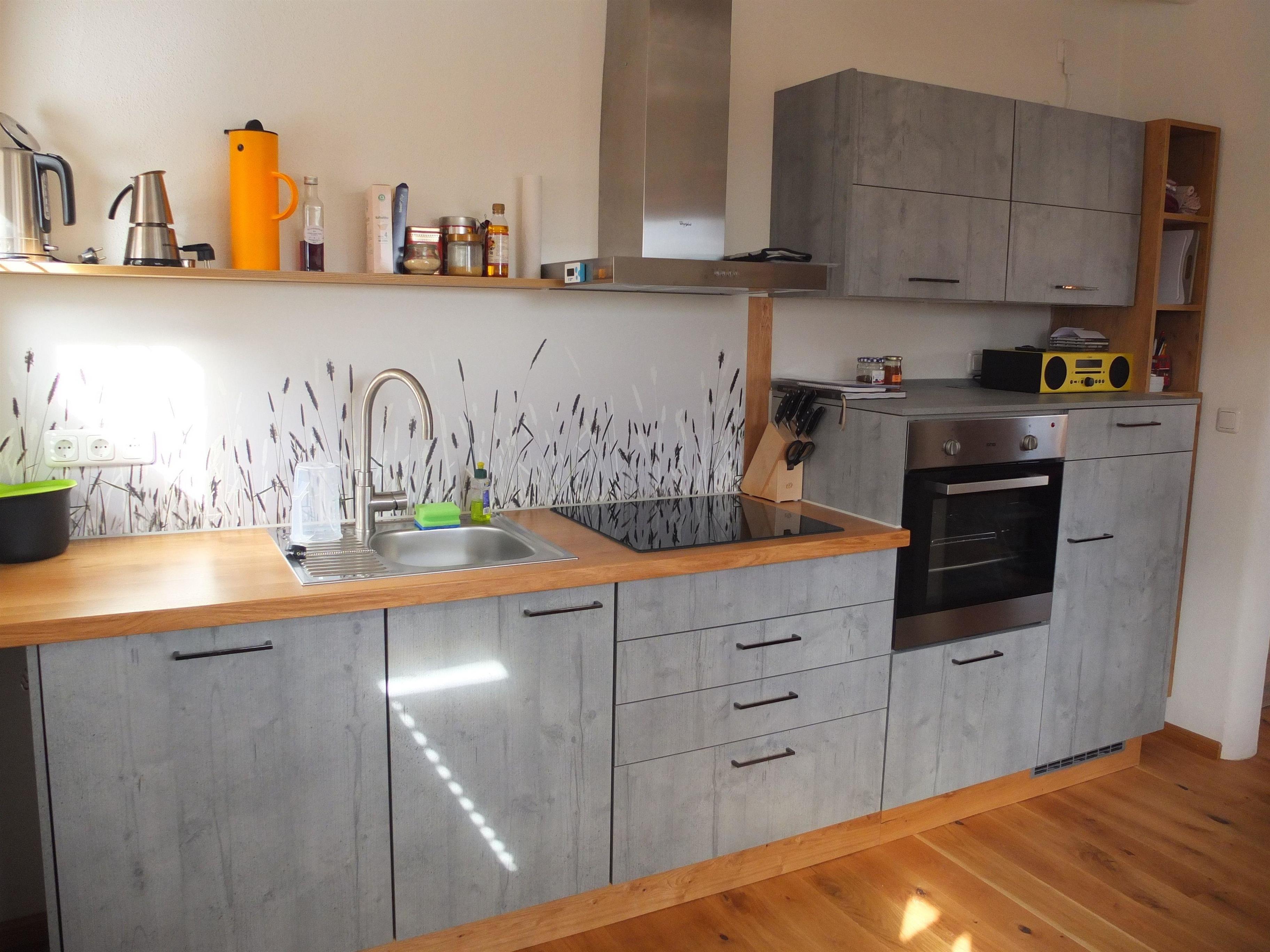 Komfortable Küche mit allen notwendigen Küchenutensilien. Platzsparendes Schrankbett 140x200. Eichenparkettboden Vollholz. Schränke weitgehenst aus Masivholz. Bad mit Dusche Waschbecken und Toilette. Wenns mal kalt wird, mit Holz über einen Kachelofen mit Sichtfenster, oder über Elektroflächenspeicherheizung.