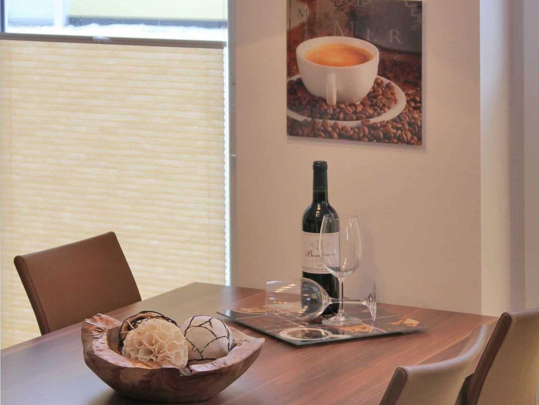 Nur 250m zumStrand liegt unsere FeWo Meeresbrise. Genießen Sie die moderne und komfortable Ausstattung im Wohnzimmer mit Eck-Couch, LCD-TV 81cm und offener Wohnküche mit Essplatz für bis zu 4 Personen. Die hochwertig ausgestattete Küche lässt keine Wünsche offen, Kühlschrank mit Gefrierfach, Geschirrspülmaschine, Herd mit Cerankochfeld inkl. Backofen, Toaster, Wasserkocher, Kaffeemaschine. Ein großes Schlafzimmer verfügt über ein Doppelbett (1,80 m x 2,00 m) und ist mit zusätzlichem LCD-TV und großem Schiebetürenschrank ausgestattet.