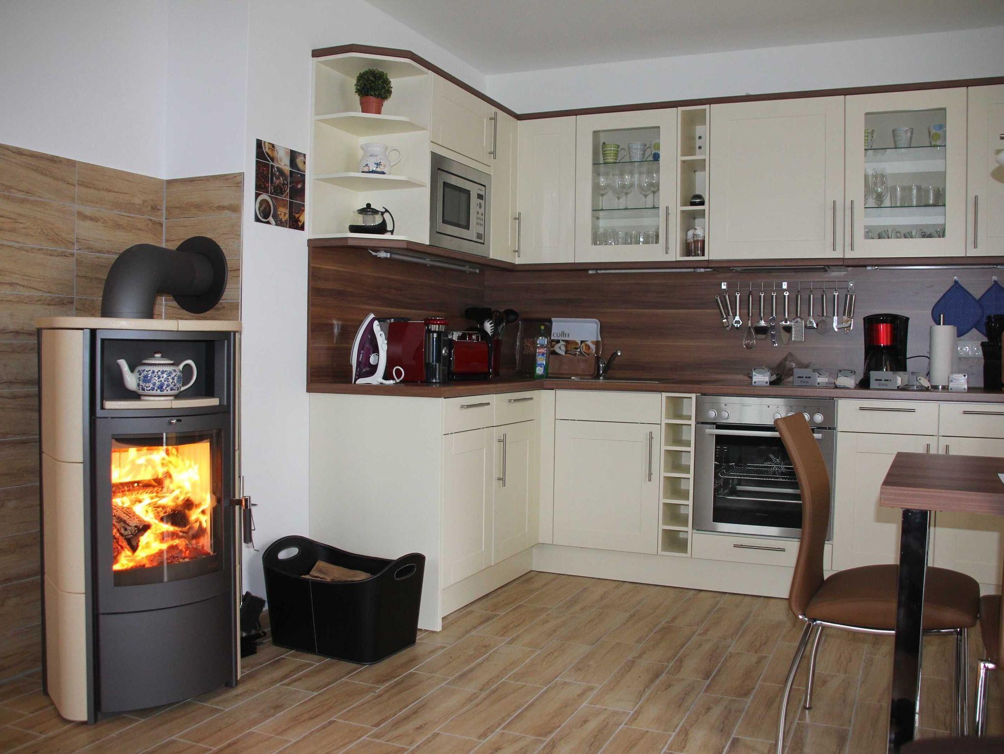 Zwei weitere Schlafmöglichkeiten finden Sie im kleineren Schlafzimmer. Hier steht Ihnen ein Ausziehbett Liegefläche insgesamt 1,60 m x 2,00 m das umfunktioniert werden kann zu einem weiteren Doppelbett. Ein modernes Bad mit Dusche rundet die Ausstattung ab. An kühleren Tagen können Sie sich vorm Kaminofen eine gemütliche Stimmung zaubern. Eine Fußbodenheizung in allen Räumen zeigt den Wohlfühlcharakter unserer FeWo. Ein elektronischer Schranktresor steht Ihnen bei uns zur Verfügung. Mückenschutzgitter sind an allen Fenstern angebracht. Wir bitten Handtücher und Bettwäsche mitzubringen. Unsere Unterkunft ist für Monteure nicht geeignet.