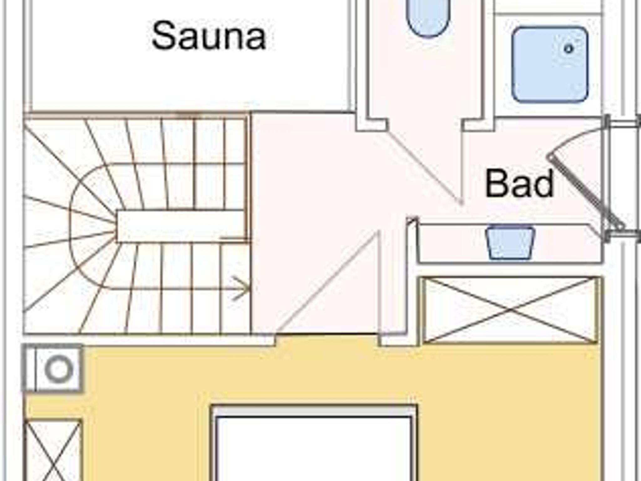 Im Obergeschoss erwartet euch ein gemütliches Schlafzimmer mit Doppelbett, ein modernes Badezimmer mit Dusche und WC sowie eine private Sauna perfekt, um nach einem Strandspaziergang oder einem kühlen Tag zu entspannen.