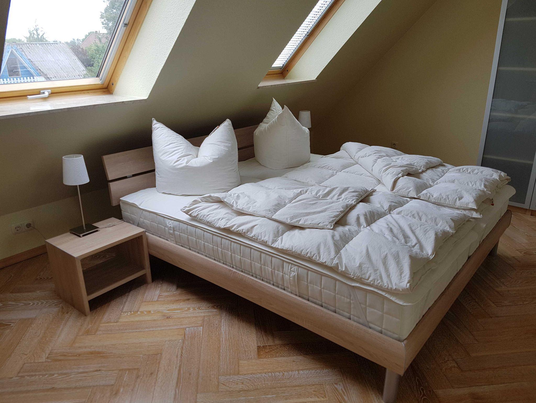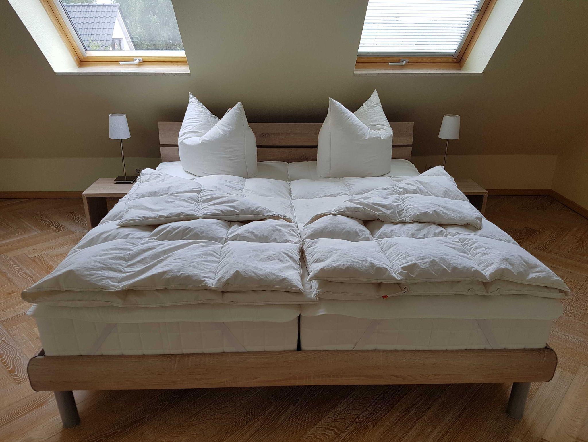 Im Obergeschoss erwarten euch zwei separate Schlafzimmer: eines mit einem komfortablen Doppelbett,