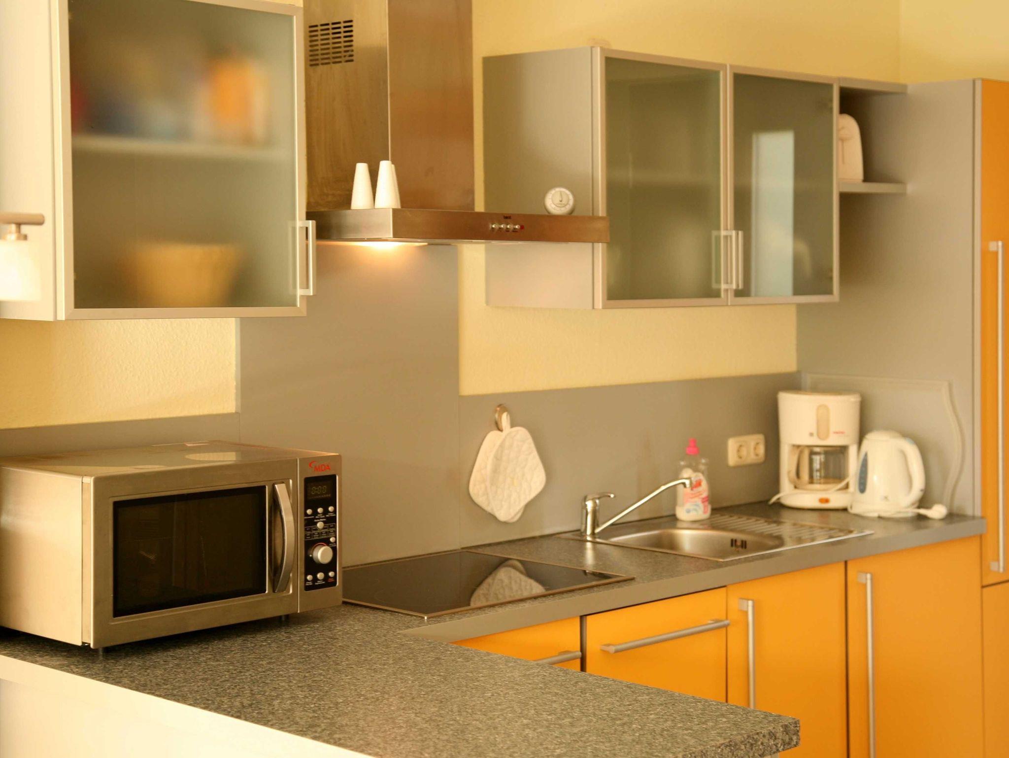 Zur Ausstattung gehören außerdem ein Reisebettchen und ein Kinderhochstuhl für unsere kleinen Gäste.