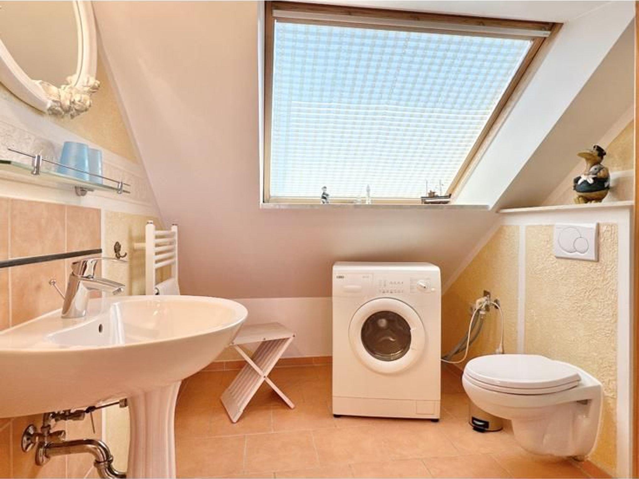 Zwei gemütliche Schlafzimmer sowie zwei moderne Tageslichtbäder (eines davon mit Waschmaschine) bieten Komfort für Groß und Klein. Die Fußbodenheizung im Erdgeschoss sorgt besonders an kühleren Tagen für ein angenehmes Wohlfühlklima.