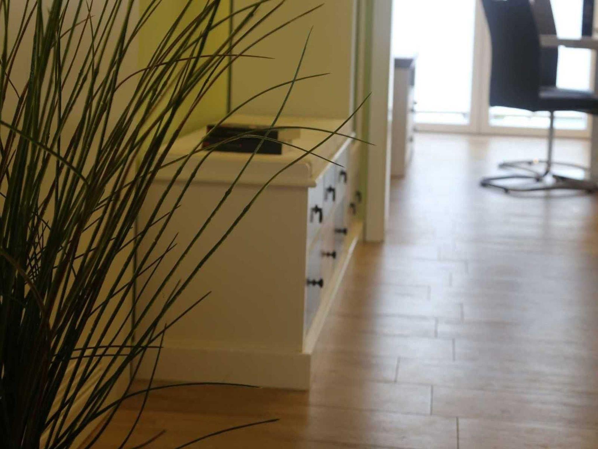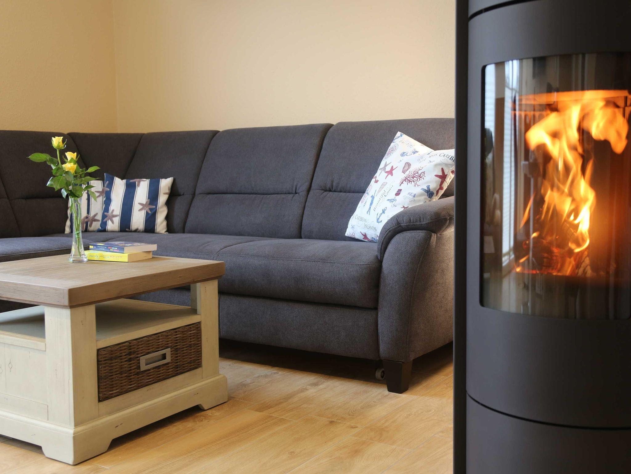 Auf dem Balkon kann man ab den frühen Vormittagsstunden bis zum Sonnenuntergang die Sonne genießen und im Hintergrund das Rauschen der Ostsee hören. In der kühlen Jahreszeit sorgt der Kaminofen für eine gemütliche Atmosphäre. Das Bad verfügt über eine bodentiefe Dusche, Handtuchwärmer und Fön. Im Schlafzimmer sorgt das große Bett von 1,80 m x 2,00 m für einen erholsamen Schlaf. Die hohen bodentiefen Fenster durchfluten das Appartement mit Tageslicht. Im gesamten Appartement ist eine Fußbodenheizung integriert. Für unsere kleinen Gäste stehen ein Babyreisebett sowie ein Hochstuhl bereit. Eine Waschmaschine steht zur kostenfreien Nutzung im Abstellraum bereit, dieser befindet sich in der Ferienwohnung.