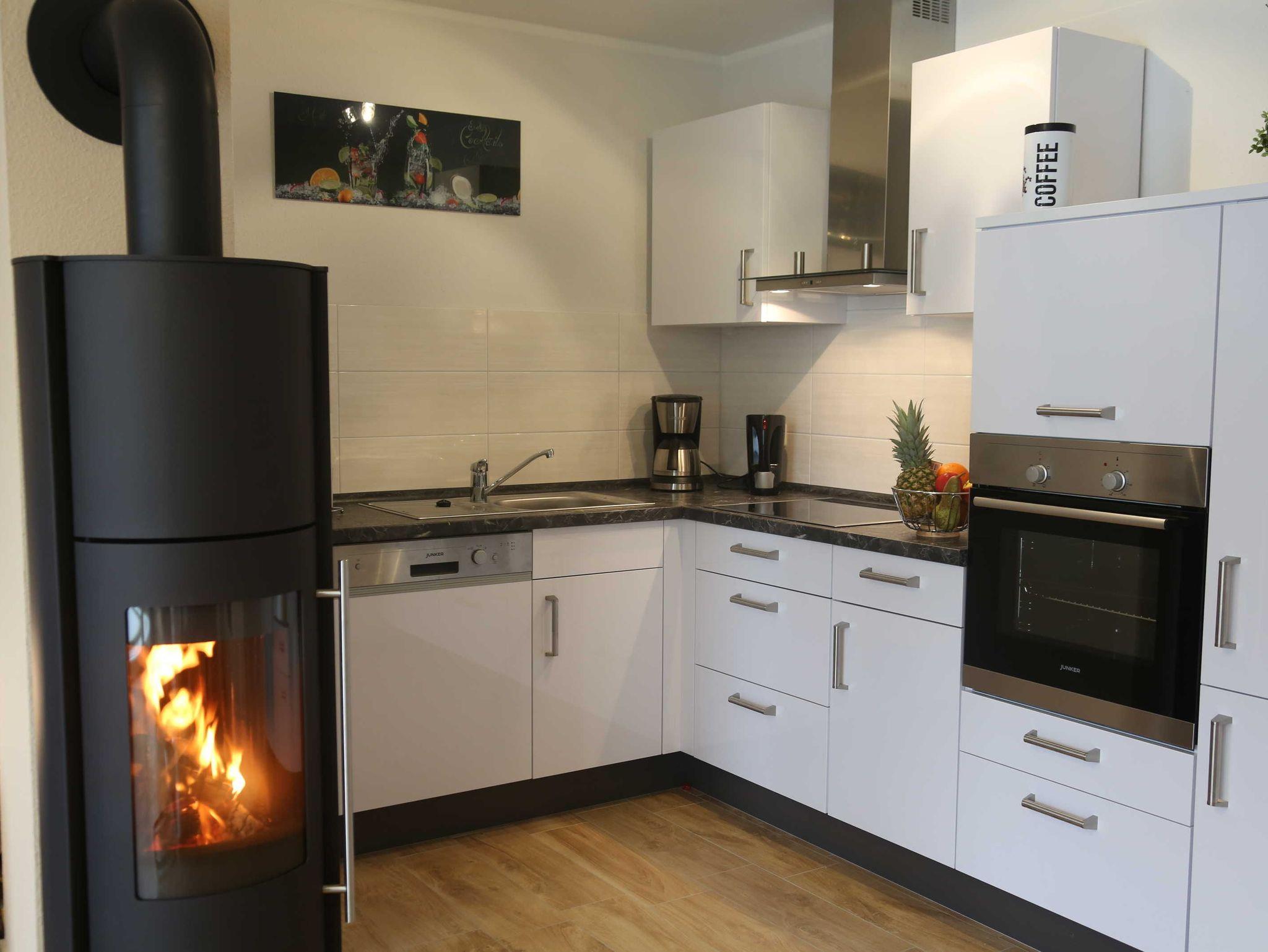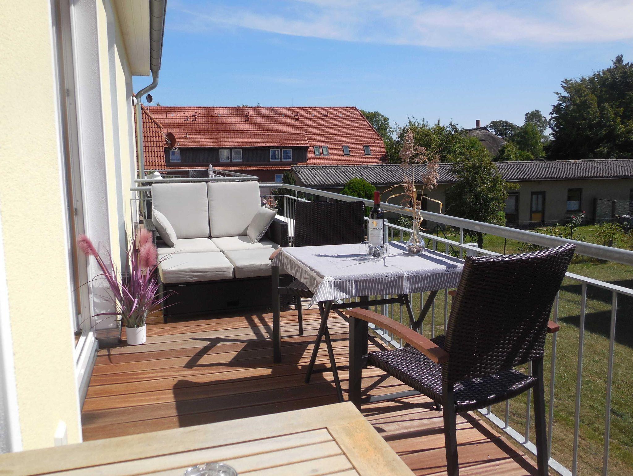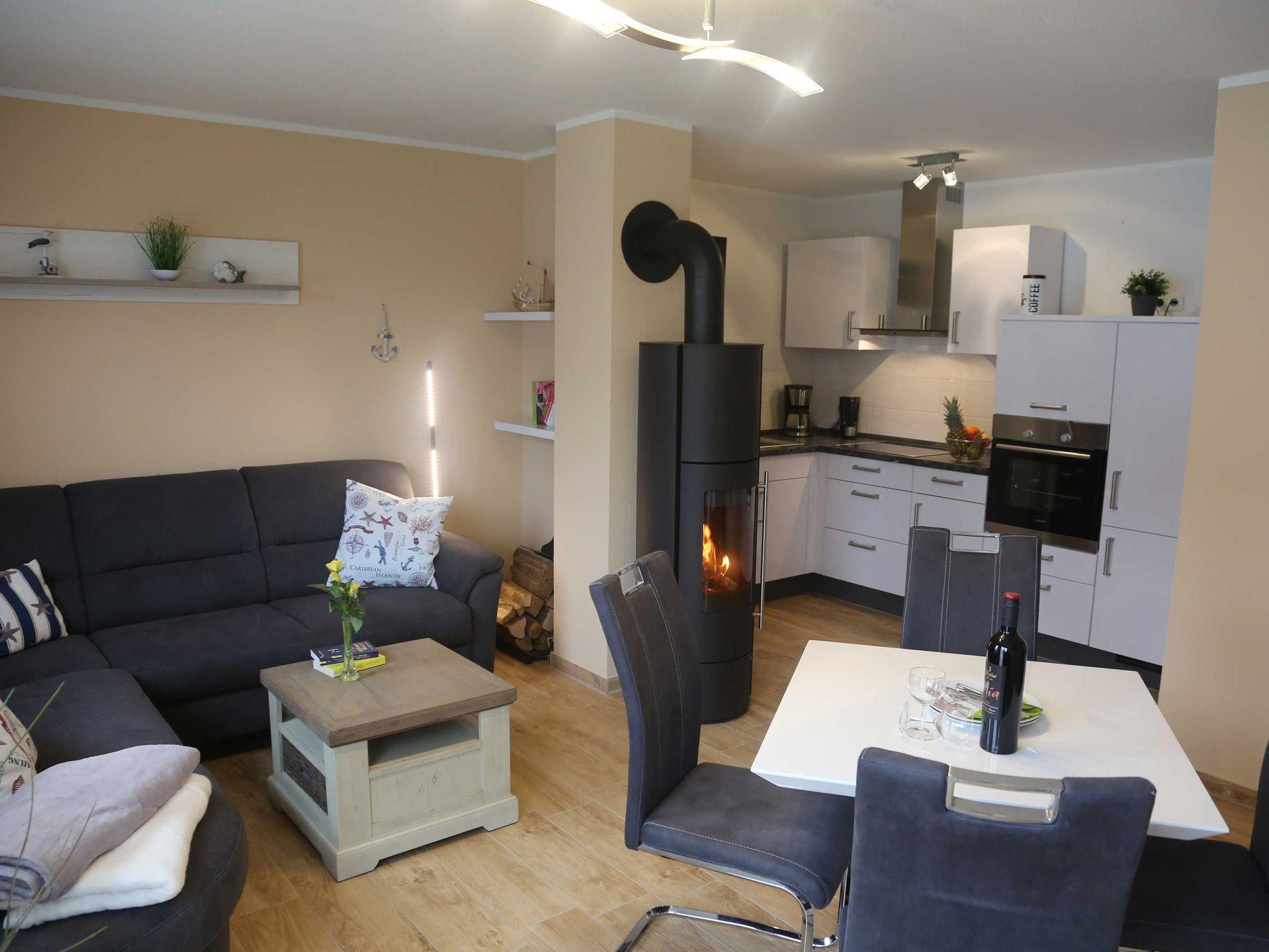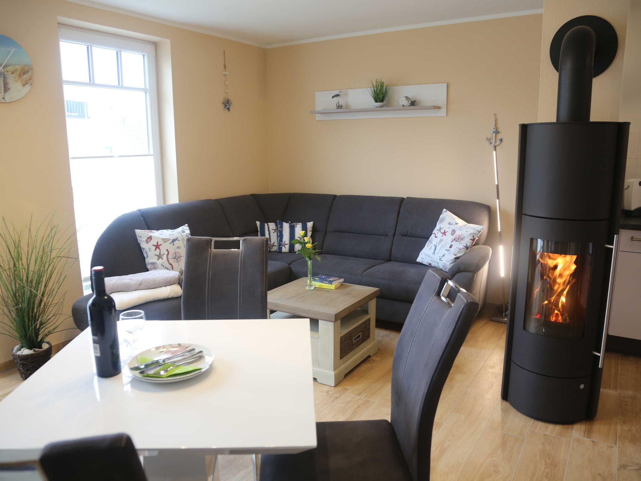 Unser modernes Appartement bietet Ihnen Platz für 2 bis 4 Personen. Der Wohn- und Eßbereich verfügt über eine voll ausgestattete offene Wohnküche mit Induktionskochfeld, Geschirrspüler, Mikrowelle und vielem mehr. Zum Relaxen ist das große Ecksofa mit Schlaffunktion ideal. Damit keine lange Weile aufkommt, stehen ein LED-TV mit großem Bildschirm, Spiele Karten und Bücher bereit. Auf dem Balkon kann man ab den frühen Vormittagsstunden bis zum Sonnenuntergang die Sonne genießen und im Hintergrund das Rauschen der Ostsee hören. In der kühlen Jahreszeit sorgt der Kaminofen für eine gemütliche Atmosphäre. Das Bad verfügt über eine bodentiefe Dusche, Handtuchwärmer und Fön. Im Schlafzimmer sorgt das große Bett von 1,80 m x 2,00 m für einen erholsamen Schlaf. Die hohen bodentiefen Fenster durchfluten das Appartement mit Tageslicht. Im gesamten Appartement ist eine Fußbodenheizung integriert. Für unsere kleinen Gäste stehen ein Babyreisebett sowie ein Hochstuhl bereit. Eine Waschmaschine steht zur kostenfreien Nutzung im Abstellraum bereit, dieser befindet sich in der Ferienwohnung.