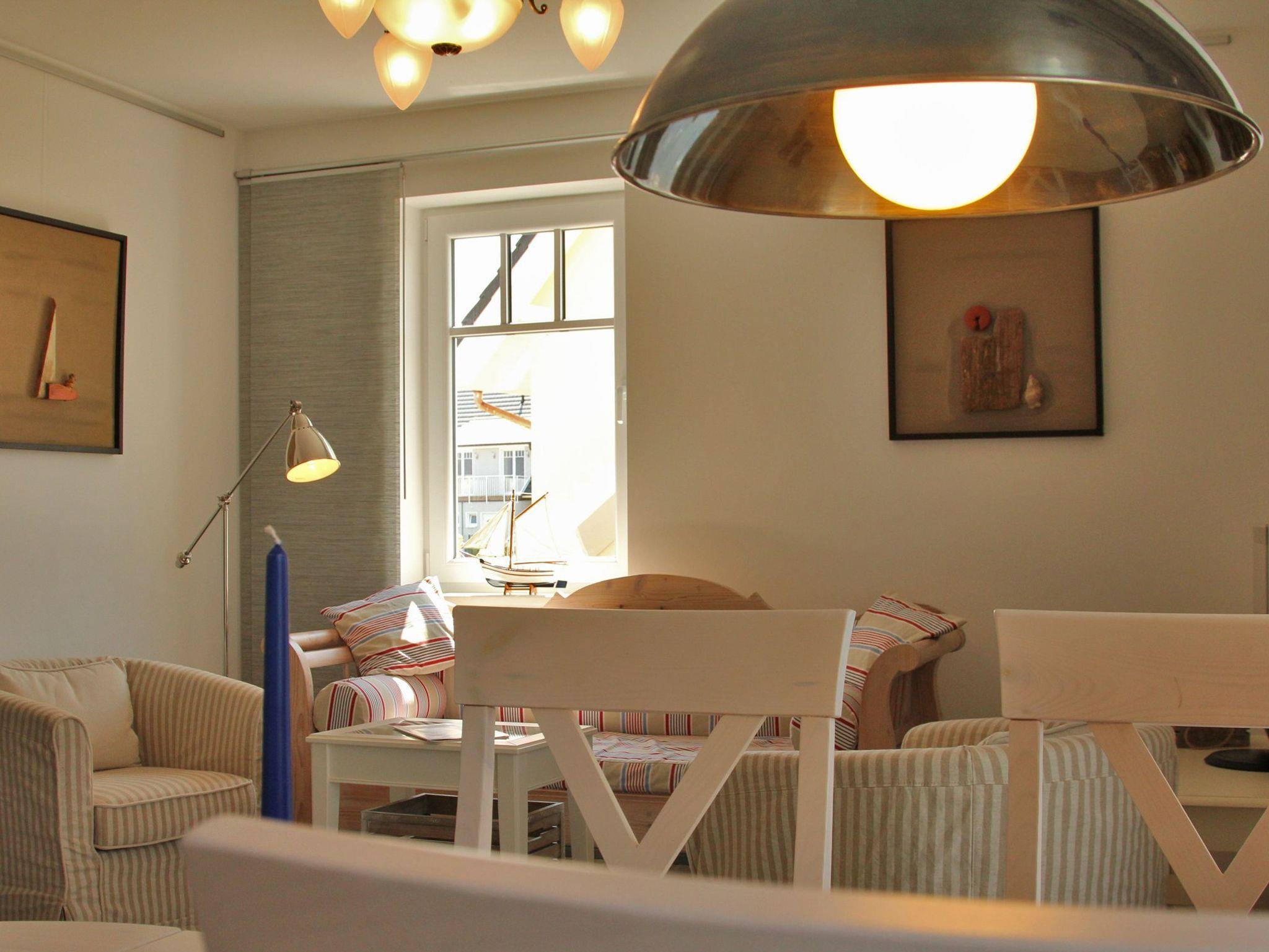 Die Bilder an den Wänden stammen von einem norddeutschen Künstler und unterstreichen den maritimen Charakter der Wohnung.