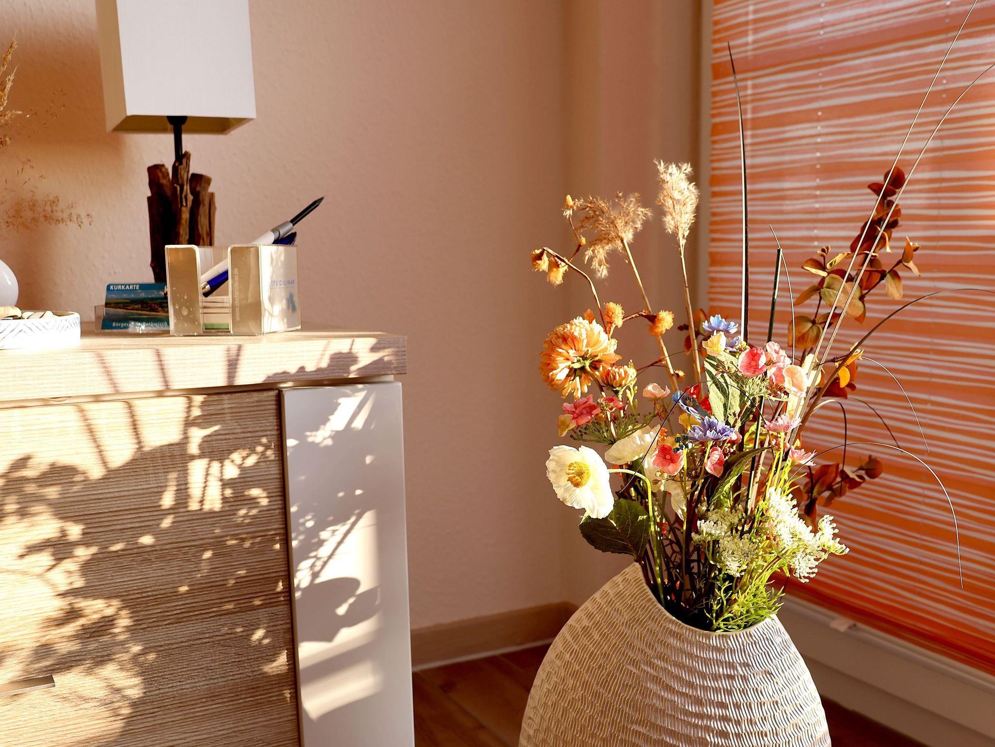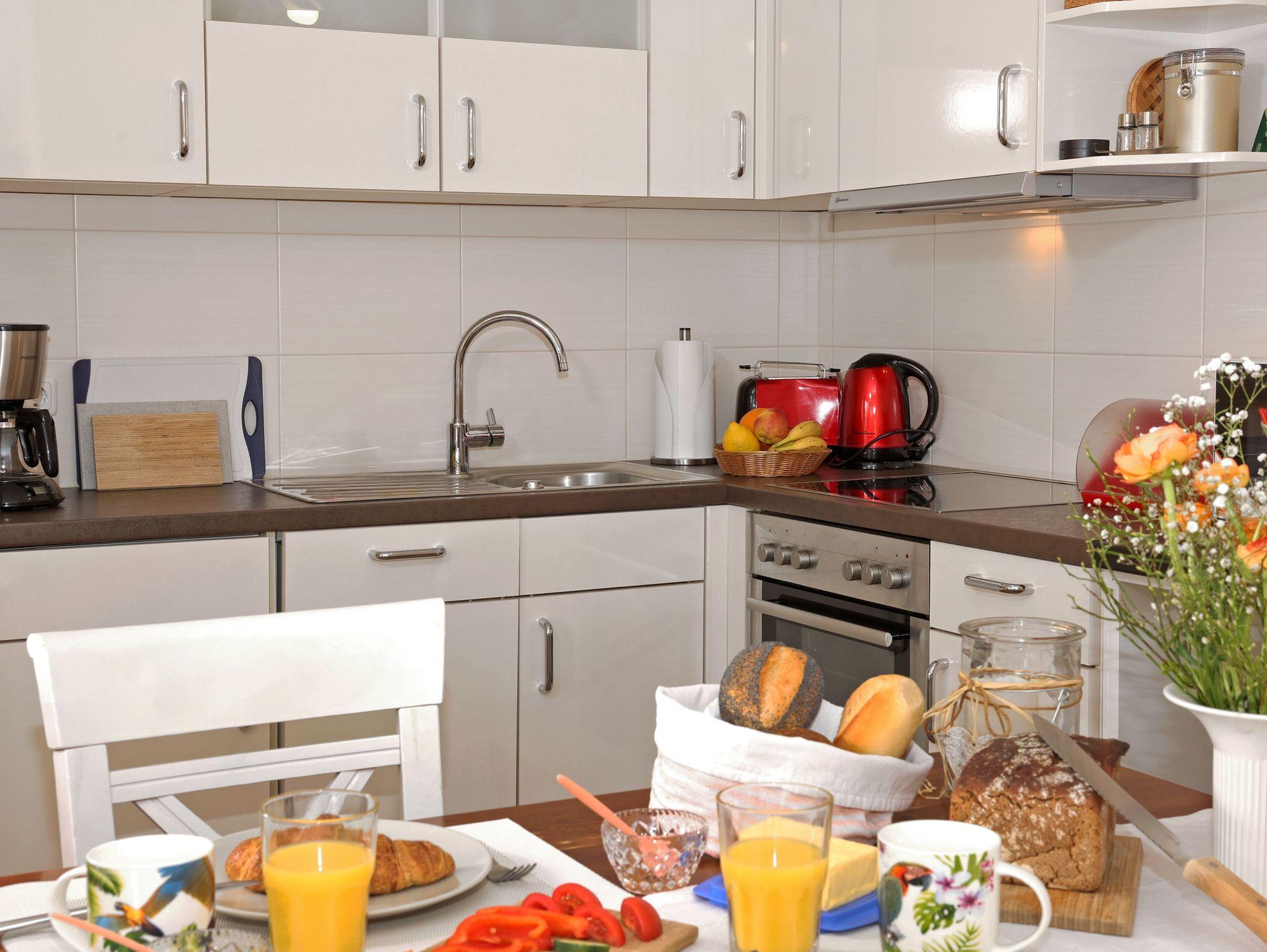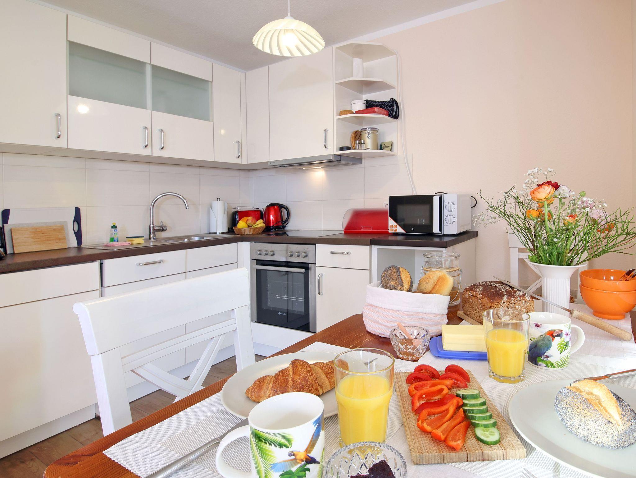 Im Schlafzimmer befindet sich ein Doppelbett mit den Maßen 1,80 x 2,00 m. Eine Schlafcouch für 2 Personen finden Sie im Wohnzimmer. Insgesamt bietet unser Appartement Platz für bis zu 4 Personen. LCD-Fernseher und Radio bieten Unterhaltung in unserer Ferienwohnung. Im offenen Wohnzimmer befindet sich eine integrierte hochwertige Einbauküche mit Geschirrspüler, Herd mit Cerankochfeld, Backofen, Wasserkocher, Toaster, Kaffeemaschine und Kühlschrank mit Gefriermöglichkeit. Das moderne ist mit einer großen fast ebenerdigen Dusche und Handtuchwärmer ausgestattet. Die Sonne kann man ab späten Vormittag bis zum Untergang auf dem großen Süd West Balkon, den man auch über das Schlafzimmer erreichen kann, genießen. So entspannt können Sie die Urlaubstage bei einem Glas Wein und guter Unterhaltung ausklingen lassen. Für unsere kleinen Gäste stehen ein Reisebabybett sowie ein Kinderhochstuhl kostenfrei zur Verfügung. Wir stellen unseren Gästen auch eine Waschmaschine kostenfrei zur Verfügung, diese befindet sich direkt im Appartement. Ebenfalls nutzen unsere Gäste in unserem Appartement einen kostenfreien W-LAN Anschluss. Unser modern eingerichtetes App. liegt nur 250 m vom Ostseestrand entfernt und ist entspannt in 3 Minuten zu Fuß zu erreichen. Das Naturschutzgebiet Conventer Niederung befindet sich in unmittelbarer Nachbarschaft. Der großzügige Flurbereich lädt ein in die Nichtraucherwohnung, die mit einer modernen gehobenen Ausstattung versehen ist. Der PKW-Stellplatz befindet sich direkt vor dem Ferienhaus und ist damit sehr vorteilhaft durch den kurzen Weg zur Ferienwohnung. Wir bitten Bettwäsche und Handtücher mitzubringen.