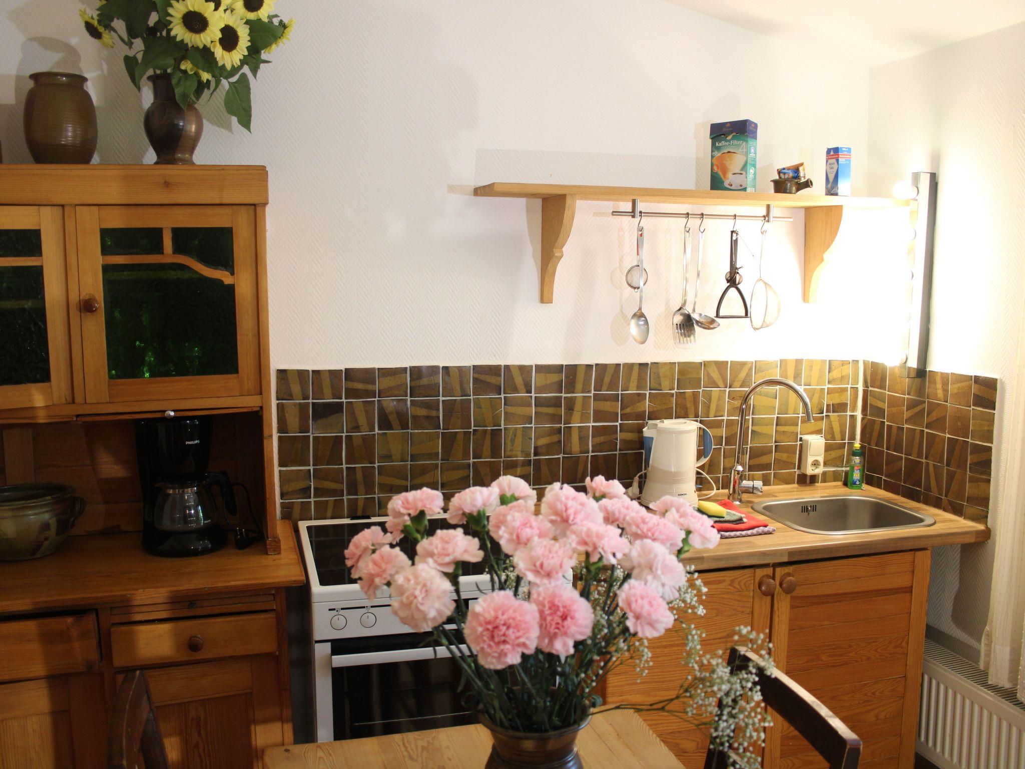 We love old furniture. This gives the rooms an individual flair, which is emphasised by the natural wooden floorboards. If you are travelling with a small child, a baby cot and a high chair can be provided. A smoking area with seating is 15 metres away. The nearest shopping centre is 4 km away. There are 4 fully furnished guest accommodations on the property. Your car park is located on the property. The holiday home is located on the same property as the owner's house. Arrival is between 4 and 6 pm. Please arrange any deviations by telephone. On the day of departure, please return the keys by 10 am at the latest.