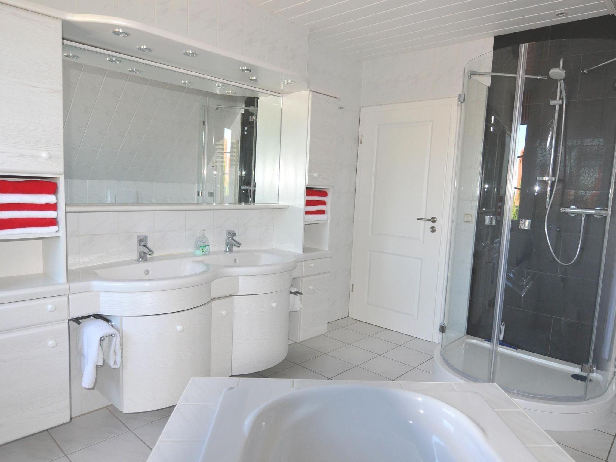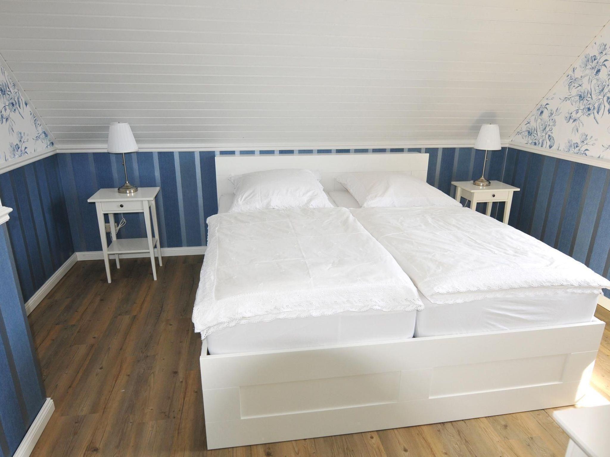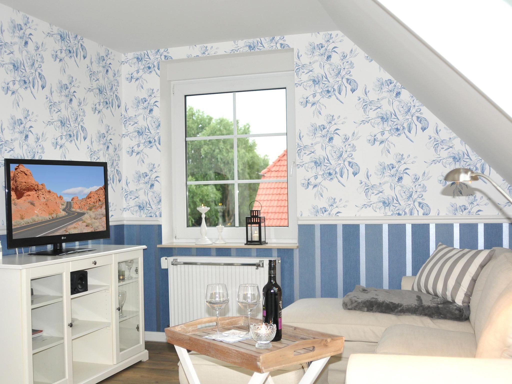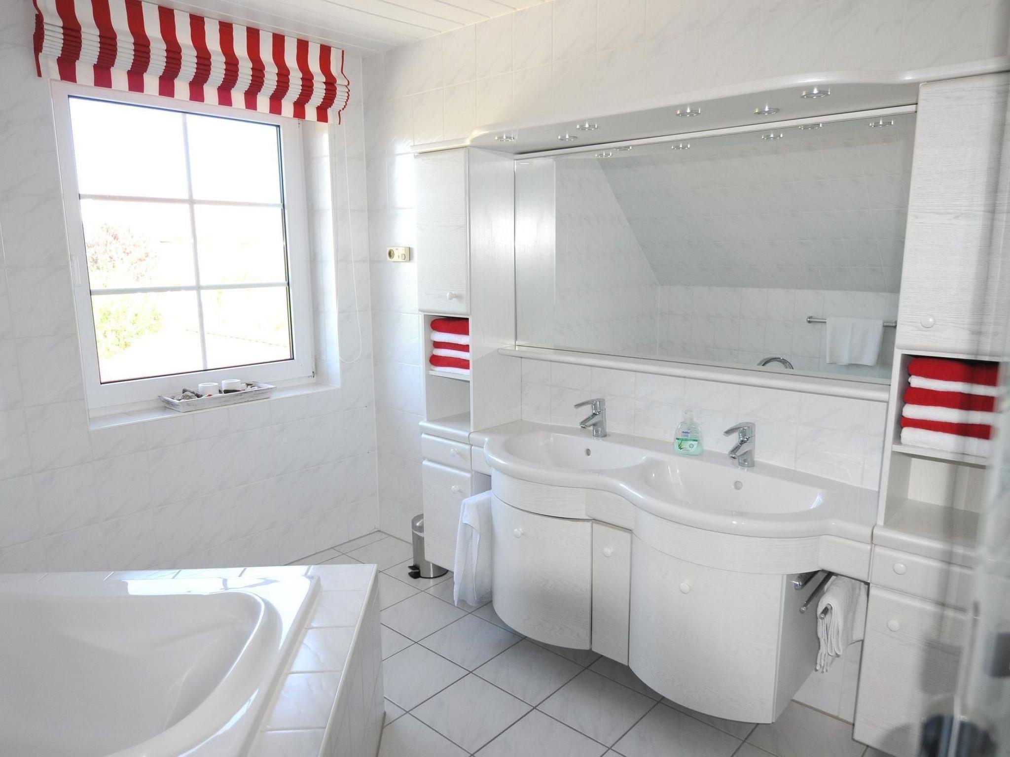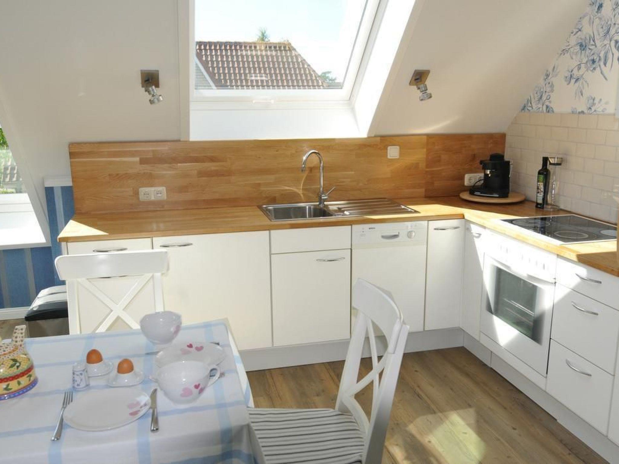 The bright, spacious holiday flat in typical Nordic style is suitable for up to four people and its colours and patterns are reminiscent of the picturesque atmosphere of well-situated sailors' houses in the harbour towns along the Baltic coast. The living room is the centre of the flat. It is spacious and bright thanks to two large, air-conditioned skylights and offers a view of the garden. Here you can eat and relax together after an eventful day on holiday. The open-plan living room with kitchen and large, air-conditioned skylights with a view of the garden is the ideal place for your holiday breakfast if the weather doesn't allow you to use the garden. In the evening, the bright sofa invites you to relax in front of the large HD flat-screen TV. The fully equipped kitchen with hob, oven, extractor fan and dishwasher offers every convenience for cooking together on holiday. The two spacious bedrooms are equipped with roomy wardrobes and comfortable beds and can accommodate two people each. Warm colours like in Tuscany welcome you to the north-facing first bedroom with double bed. Leave your everyday worries behind and enjoy your holiday. The second bedroom is spacious and bright and welcomes its guests in the morning with a fresh Nordic holiday flair. The large luxury bathroom with underfloor heating, towel warmer, spacious, modern shower and extra-large bathtub is a wellness oasis in itself.