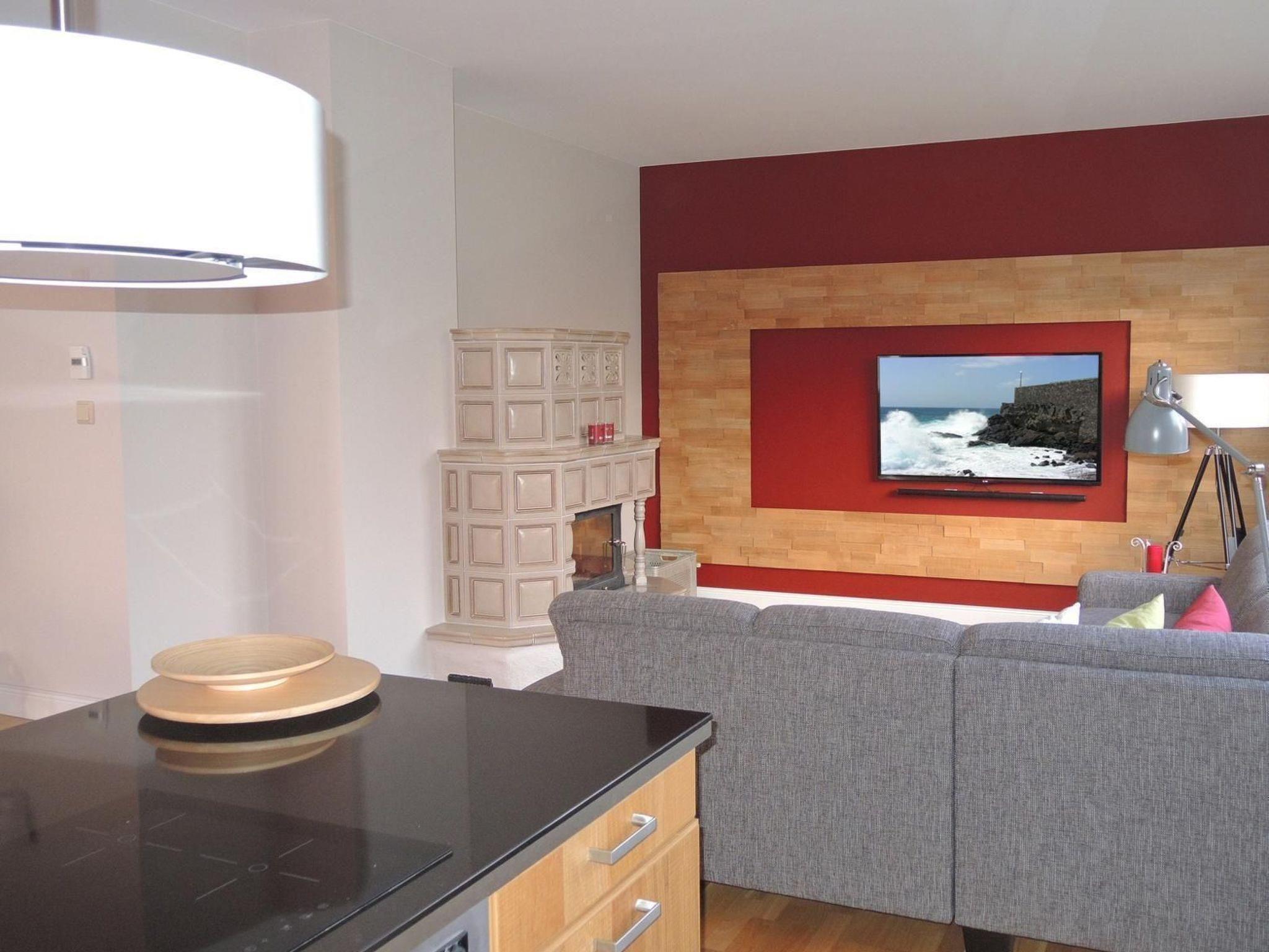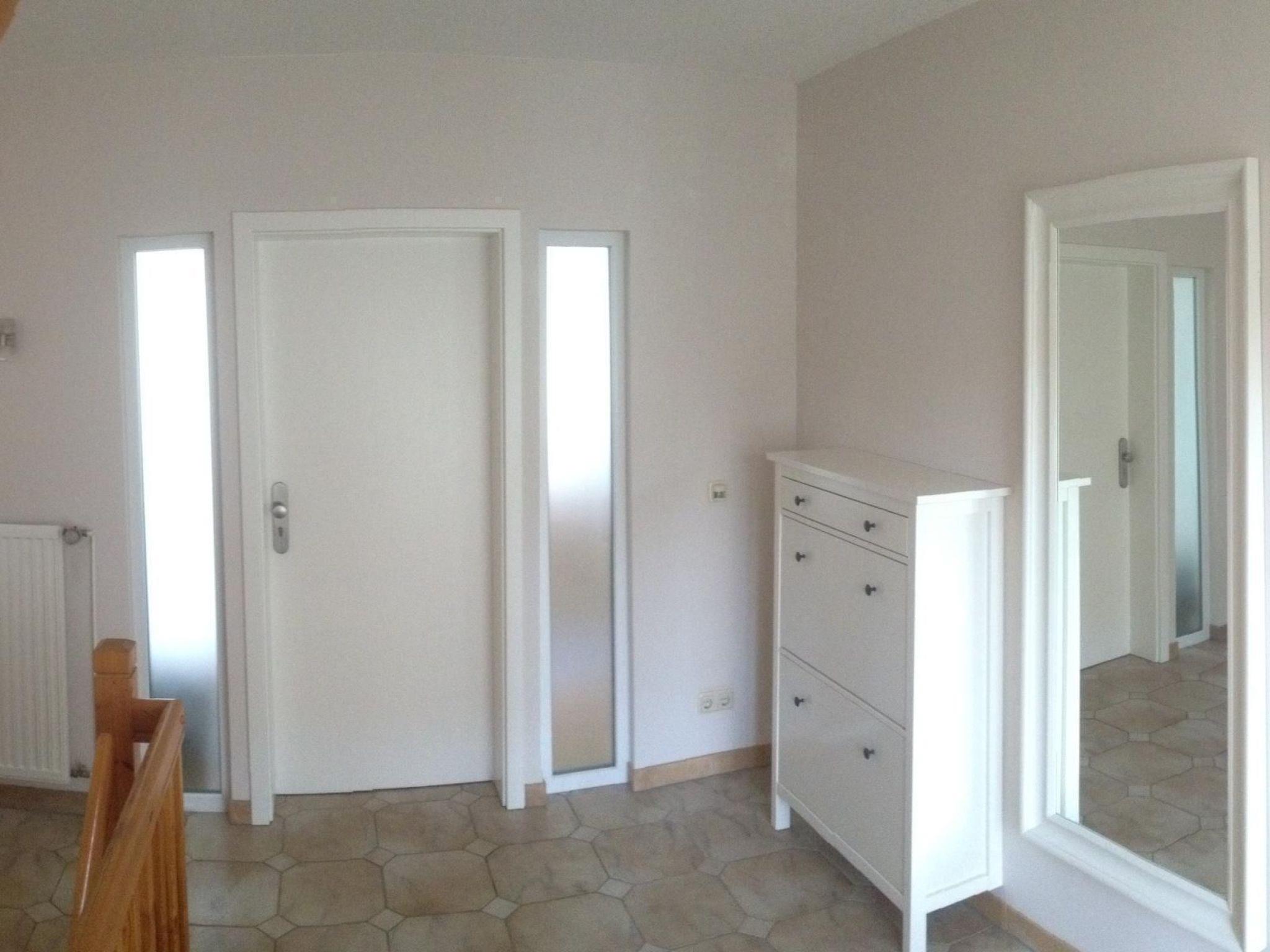 This 105m² holiday apartment is decorated and furnished in a Scandinavian style and is suitable for four people. The light and generous apartment on the ground floor features warm colours and a high-quality interior with natural materials. A large hallway and a spacious vestibule provide space for shoes and jackets. The open, light living and dining room with an integrated kitchen space and a cosy fireplace room is laid with quality real wood parquet, as are the two bedrooms and the entrance area. The modern, open and fully-equipped kitchen is the centrepiece of the generous apartment. You can cook together at the large kitchen block. The dining space with its floor-to-ceiling windows affords a view of the idyllically laid garden and is an ideal place for holiday breakfasts, if the weather does not allow you to use the garden. In the evenings the fireplace room with its large panoramic TV invites you to relax. The fireplace also exudes pleasant warmth and a cosy atmosphere on story autumn and cold winter days. The generous, quietly situated bedroom with a double bed (width 180 cm) and a view of the garden area is an oasis of tranquility. A large bedroom cupboard and a dresser with three drawers provide ample storage space. The second bedroom with two single beds (width 80 cm) is ideal for one additional guest, but can also be used by two. The large, light bathroom with morning sun, a spacious modern shower, a towel radiator, bidet, under-floor heating and a large corner bath is a wellness oasis in itself, ideal for a refreshing start to the day or relaxing in the evening. The apartment has central heating. Firewood can be bought in the village.