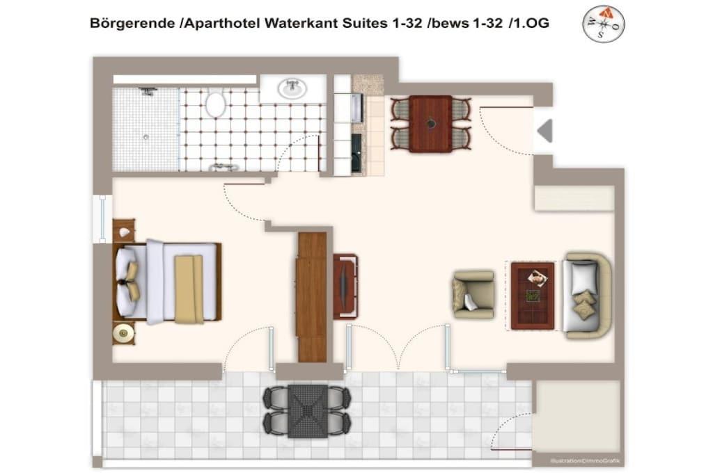 The "Strandurlaub" (Beach Holiday) apartment is located 30 metres from the Baltic Sea. Up to 4 holidaymakers can share the 57m² living space and enjoy the balcony, sauna and pool.