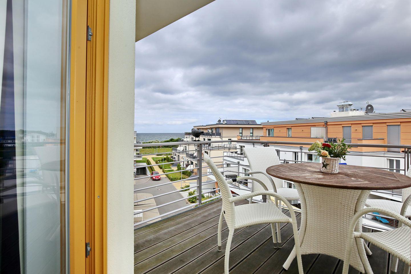 Die Penthouse Ferienwohnung 16 in der Villa Sanddorn ist eine 3-Zimmer-Wohnung im 3. OG mit einer Größe von etwa 58 m². Vom Balkon, können Sie direkt aufs Meer schauen. Zu der Wohnung gehört große eine Dachterrasse und ein Balkon.