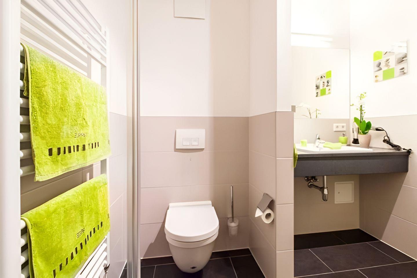 Tropenbrause, einem edlem Granit-Waschtisch, einem großen Bad-Spiegel, einem