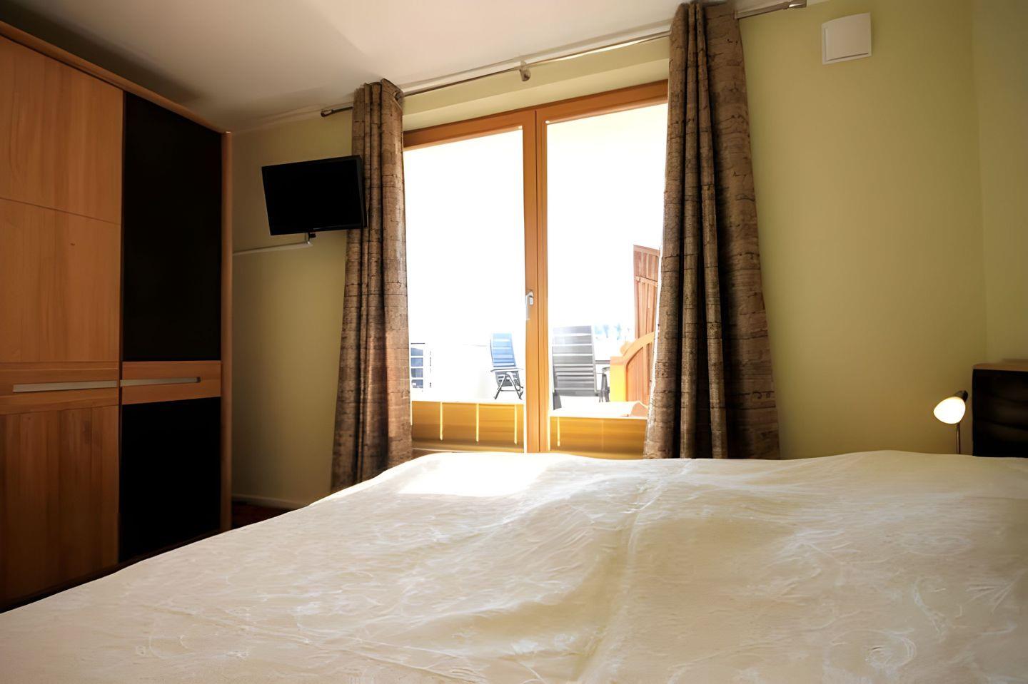 Das SCHLAFZIMMER ist mit einem hochwertigen Doppelbett ausgestattet. Dazu gehören zwei kleine Nachttische mit Leseleuchten. Die Beleuchtung vom zweitürigen Kleiderschrank kann über einen Funkschalter bedient werden. Ein 26 Zoll großer Flachbildfernseher steht ebenfalls zur Verfügung. Verdunklungsplissees und zusätzlich installierte geschmackvolle Gardinen garantieren eine erholsame Nachtruhe. Sie gelangen vom Schlafzimmer ebenso wie auch vom Wohnzimmer auf die großzügige DACHTERRASSE. Im WOHNZIMMER erwartet Sie eine bequeme L-förmige hochwertige Couch von der aus Sie sowohl auf den großen 3D-Flatscreen-TV mit Blu-ray-Player als auch auf die Landschaft Richtung „Conventer See“ blicken können. Zur Unterhaltung steht eine kleine Spiele- und Büchersammlung zur Verfügung.