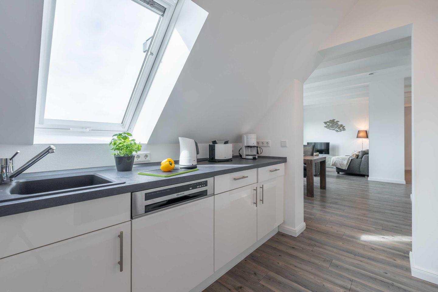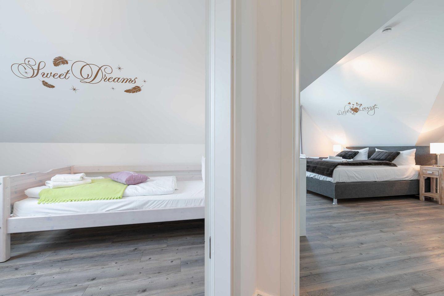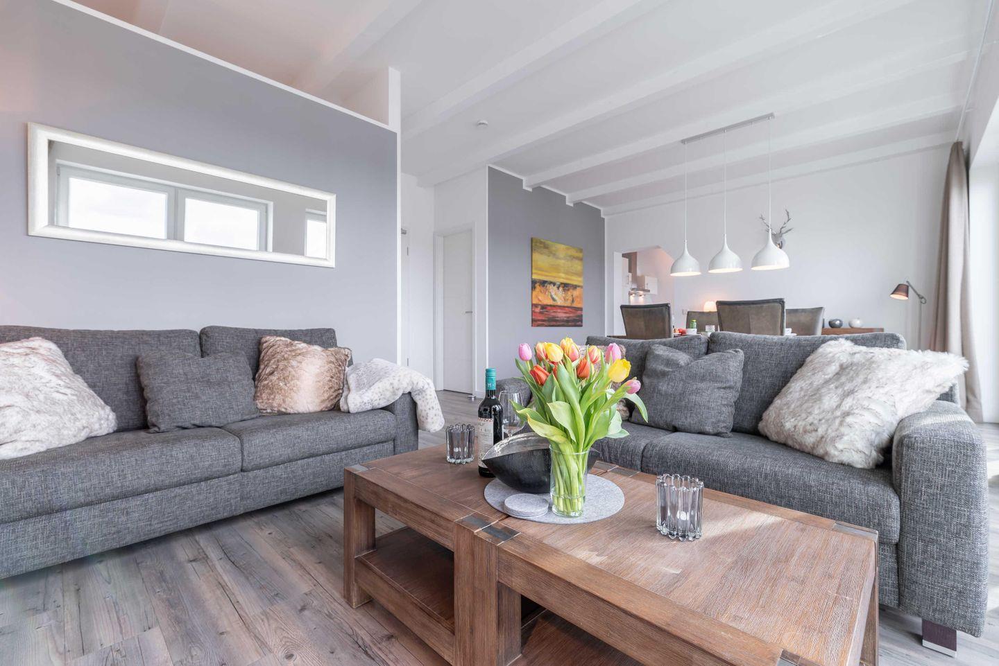 Dachgeschoss der Residenz Seestern. Im Wohnraum finden Sie eine zweiteilige