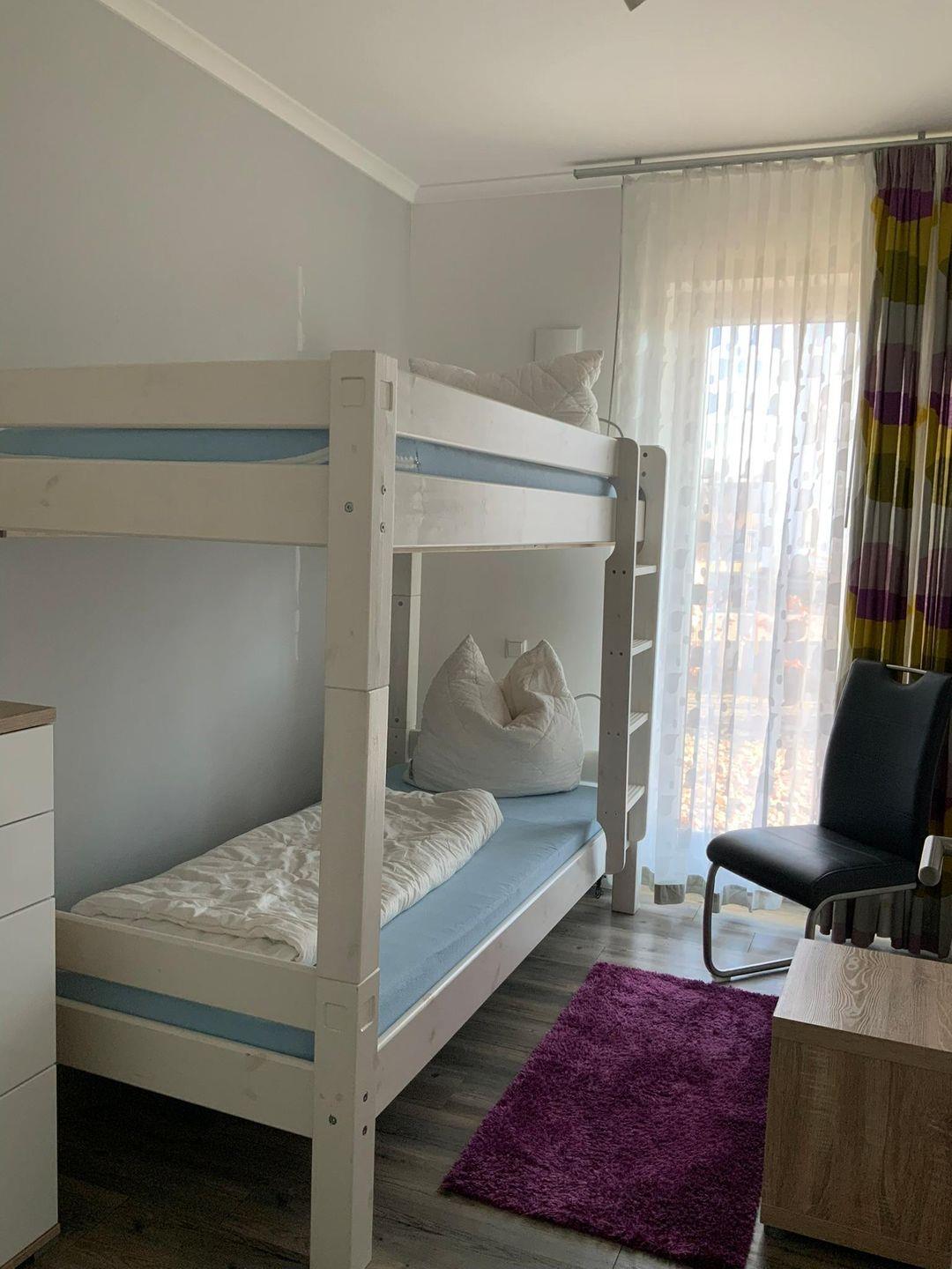 Schiebetürenschrank. Das zweite Schlafzimmer ist mit einem Etagenbett und
