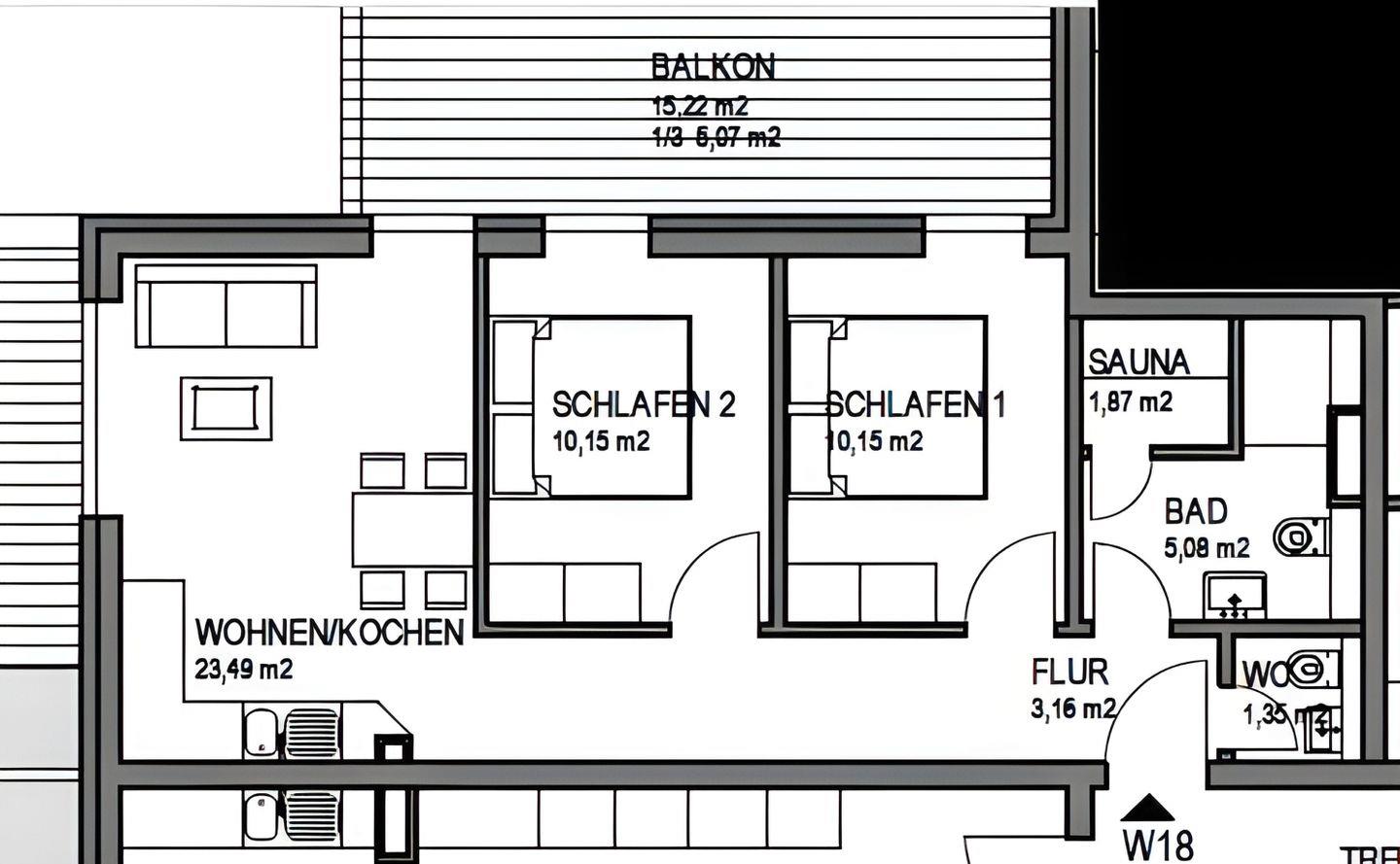 STRANDNAHE UND GROSSZÜGIGE 3-RAUMWOHNUNG FÜR MAX. 4 PERSONEN, EIGENE SAUNA UND BALKON IM 2. OG.