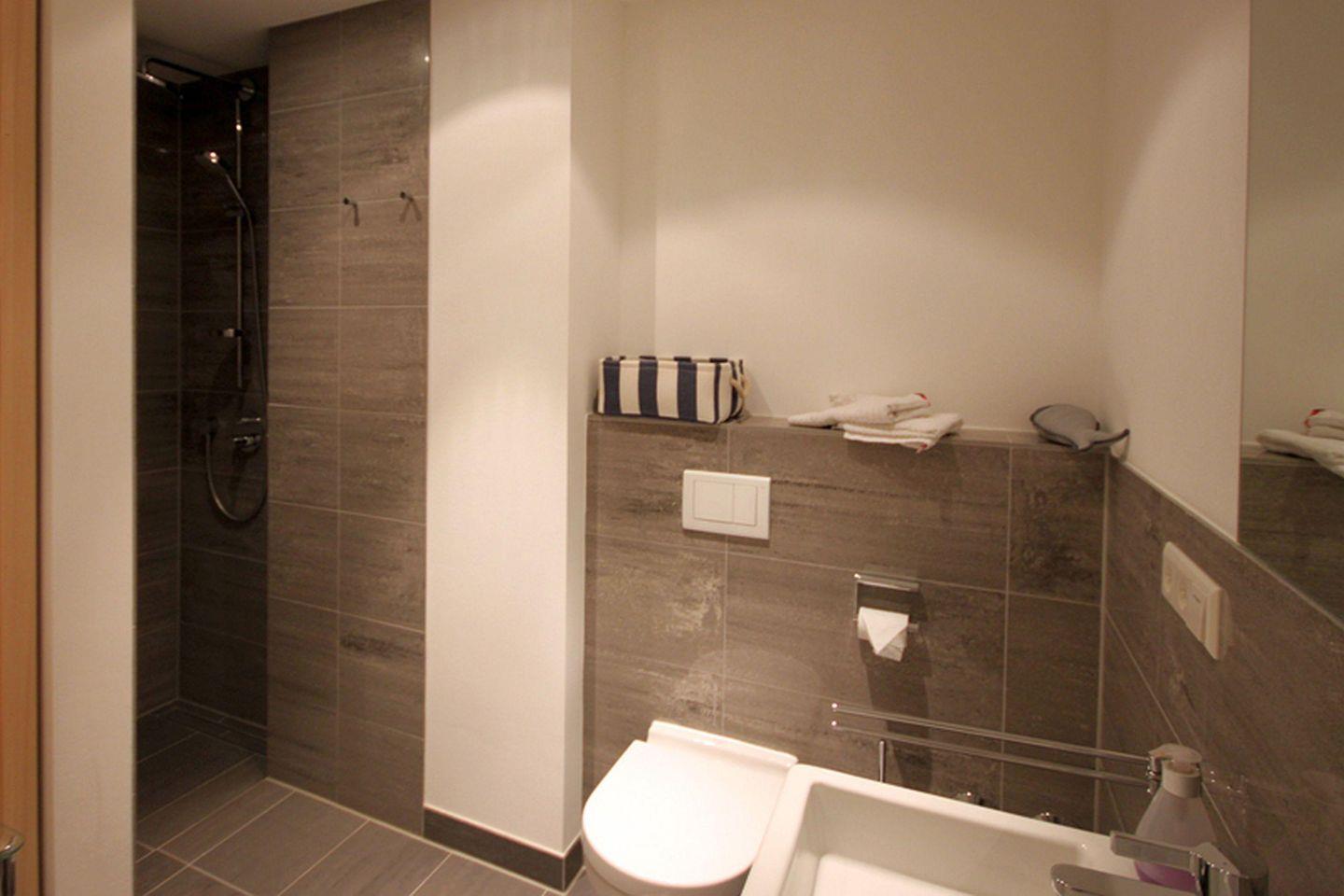 Diese Ferienwohnung besitzt ZWEI SCHLAFRÄUME. Ein Schlafraum ist mit einem Doppelbett und einem Schwebetürschrank ausgestattet. Im zweiten stehen zwei Einzelbetten und ein Kleiderschrank für Ihre Kleidung zur Verfügung. Das DUSCHBAD besticht mit einer bodengleichen Dusche, einem Waschtisch, einem Föhn und einer eigenen SAUNA. Diese ist gebührenfrei. Zusätzlich befindet sich noch ein Gäste-WC im Flurbereich. Der 2. BALKON (DACHTERRASSE) kann über den Wohnraum betreten werden. Da diese(r) nach Süden ausgerichtet ist, können Sie viele Sonnenstunden dort verbringen. Zum anderen BALKON gelangen Sie sowohl über die beiden Schlafräume als auch aus dem Wohnbereich. Die Dachterrasse liegt nach Westen. Dort steht Ihnen ein seitlicher Blick auf das Meer zur Verfügung.