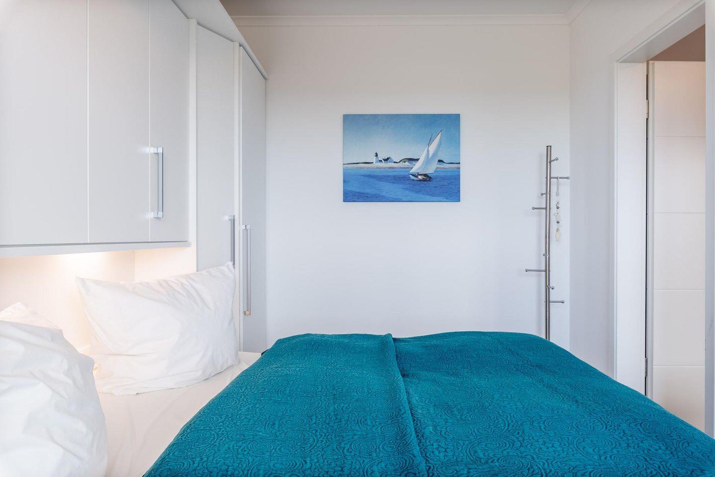 Schlafzimmer ist mit einem Doppelbett (durchgehende Matratze / 1,80 m), einer