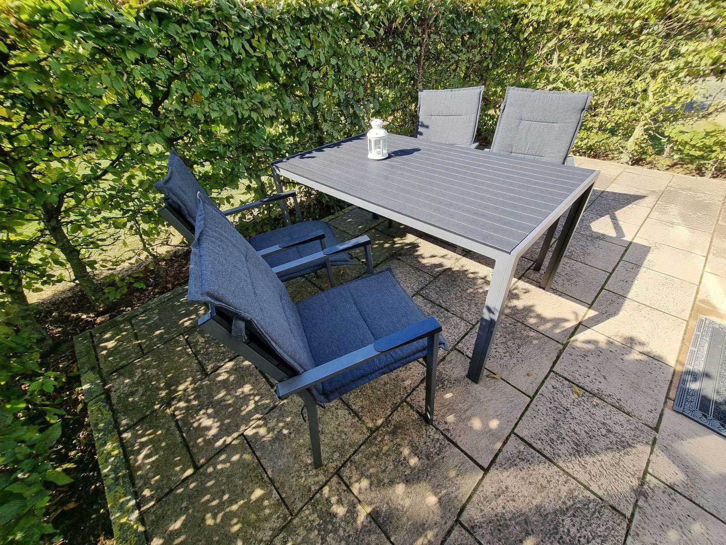großen Ledercouch; mit Flat-TV, DVD-Player und CD-Radio. Am hölzernen Esstisch finden vier Personen Platz und können den Abend nach einer gemeinsamen Mahlzeit mit einem fröhlichen Spieleabend ausklingen lassen. Aus diesem Raum gelangen Sie auf die TERRASSE. Diese wurde mit einem natürlichen Sichtschutz umgeben. Hier können Sie ungestörte Sonnenstunden genießen.