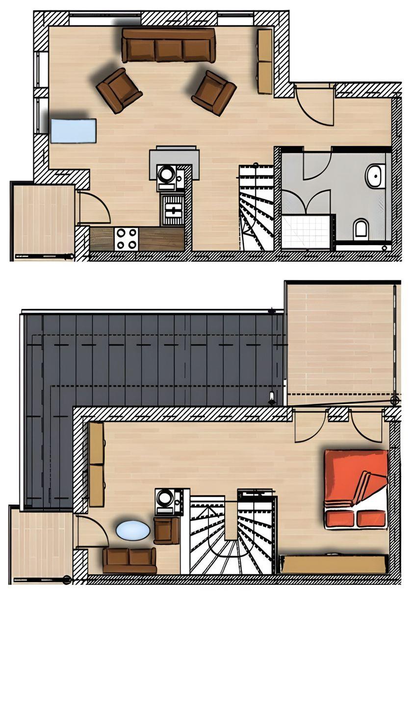 Die Harmonie setzt sich auch in den BEIDEN SCHLAFRÄUMEN fort. Beide befinden sich im Obergeschoß der Wohnung. Einer der Schlafräume ist mit einem Doppelbett und Kleiderschrank ausgestattet. Im zweiten, kleineren Schlafraum steht Ihnen ein Einzelbett und eine Schlafcouch (90x 200cm inkl. Schaumstoffmatratze) zur Verfügung.