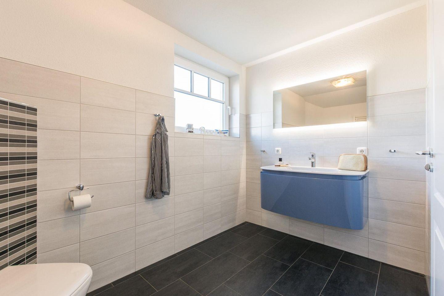 Kühlschrank. Das Badezimmer überzeugt mit einer ebenerdigen geräumigen Dusche.