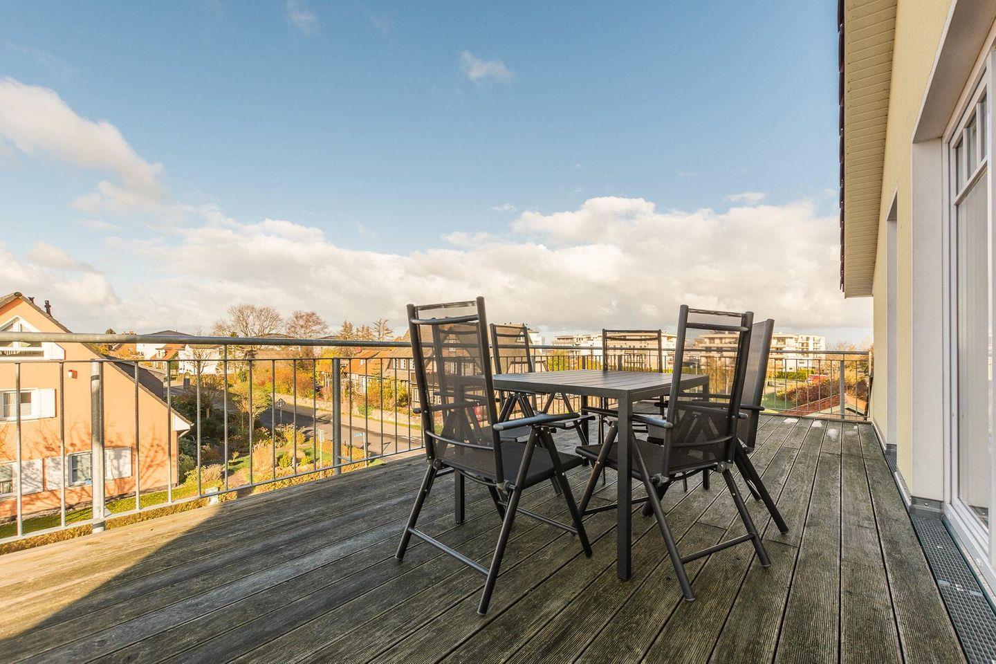 vier Personen mit einer 28 m² Dachterrasse mit einem tollen Blick auf die Ostsee
