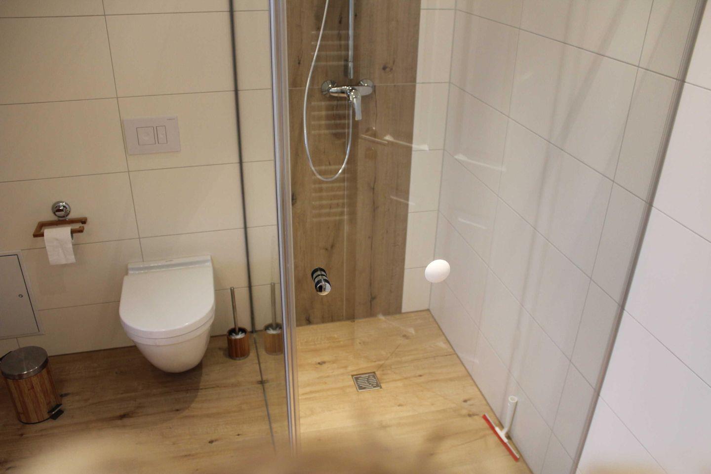 Im Ferienhaus befindet sich auf jeder Etage ein Badezimmer mit ebenerdiger