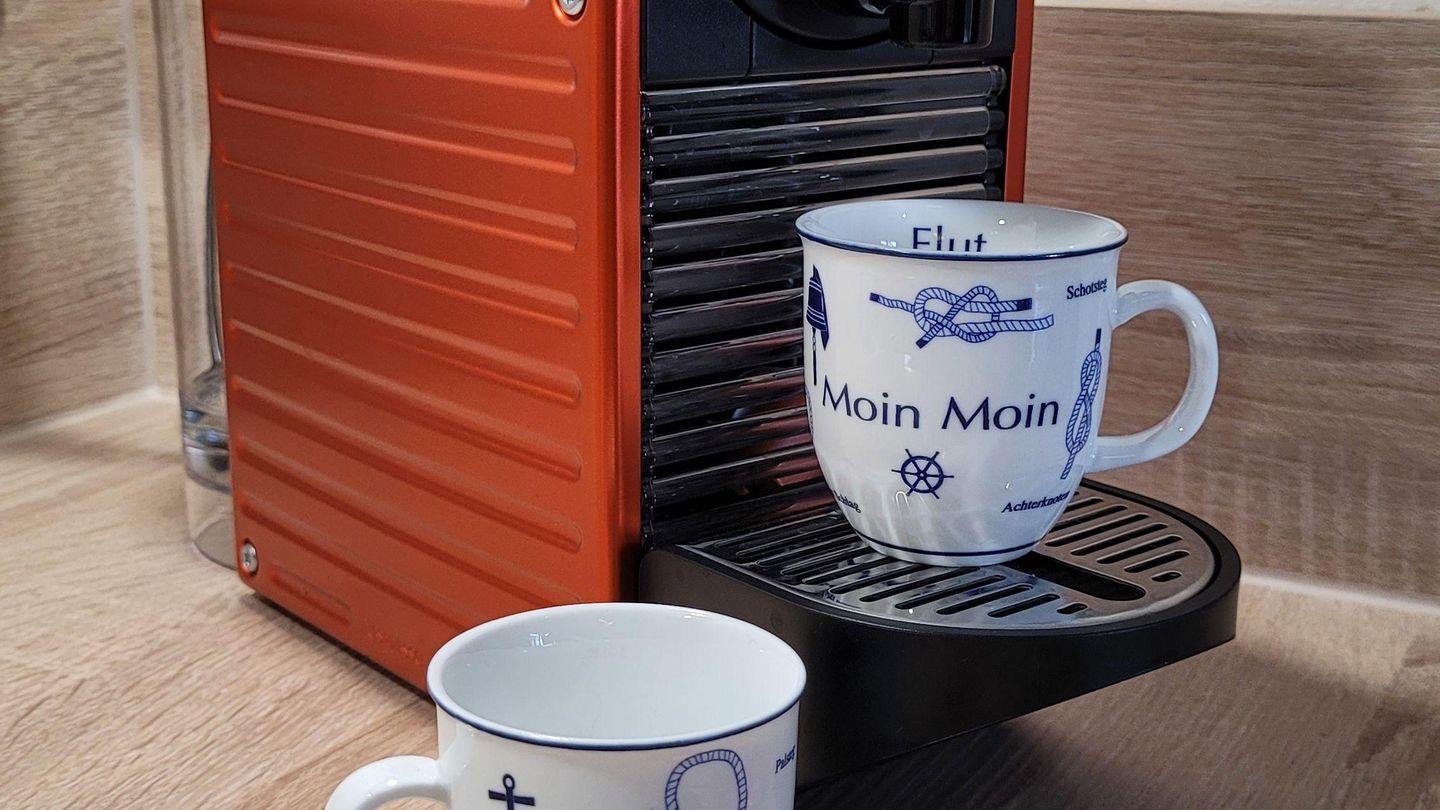 Toaster, Kaffeemaschine, Wasserkocher, ausreichend Geschirr und Gläser sind