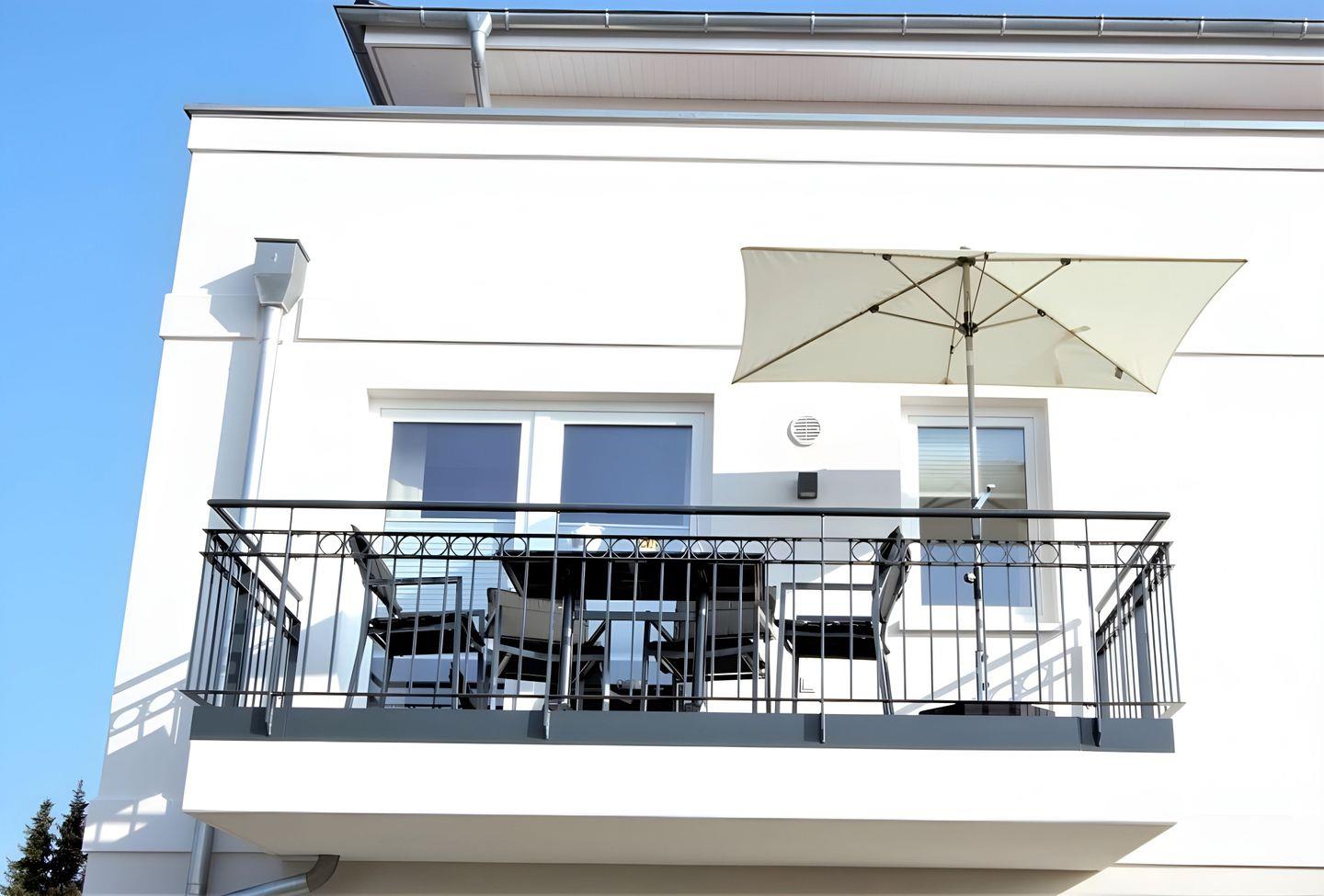 einen Balkon, der Ihnen ab der Mittagszeit bis hin zum Sonnenuntergang mit