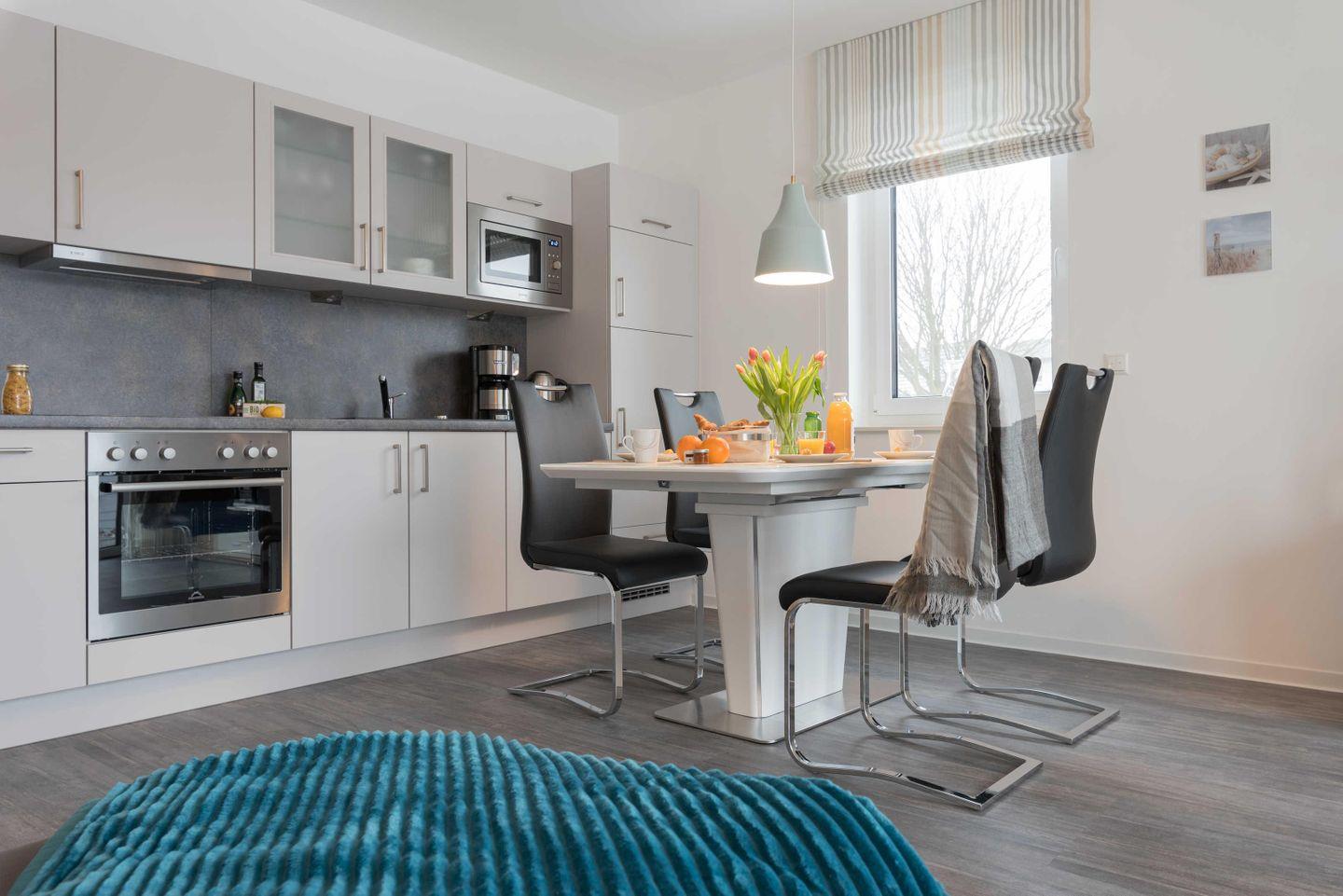 Die strandnahe Drei-Zimmer-Ferienwohnung in Südwest-Lage im maritimen Wohnstil