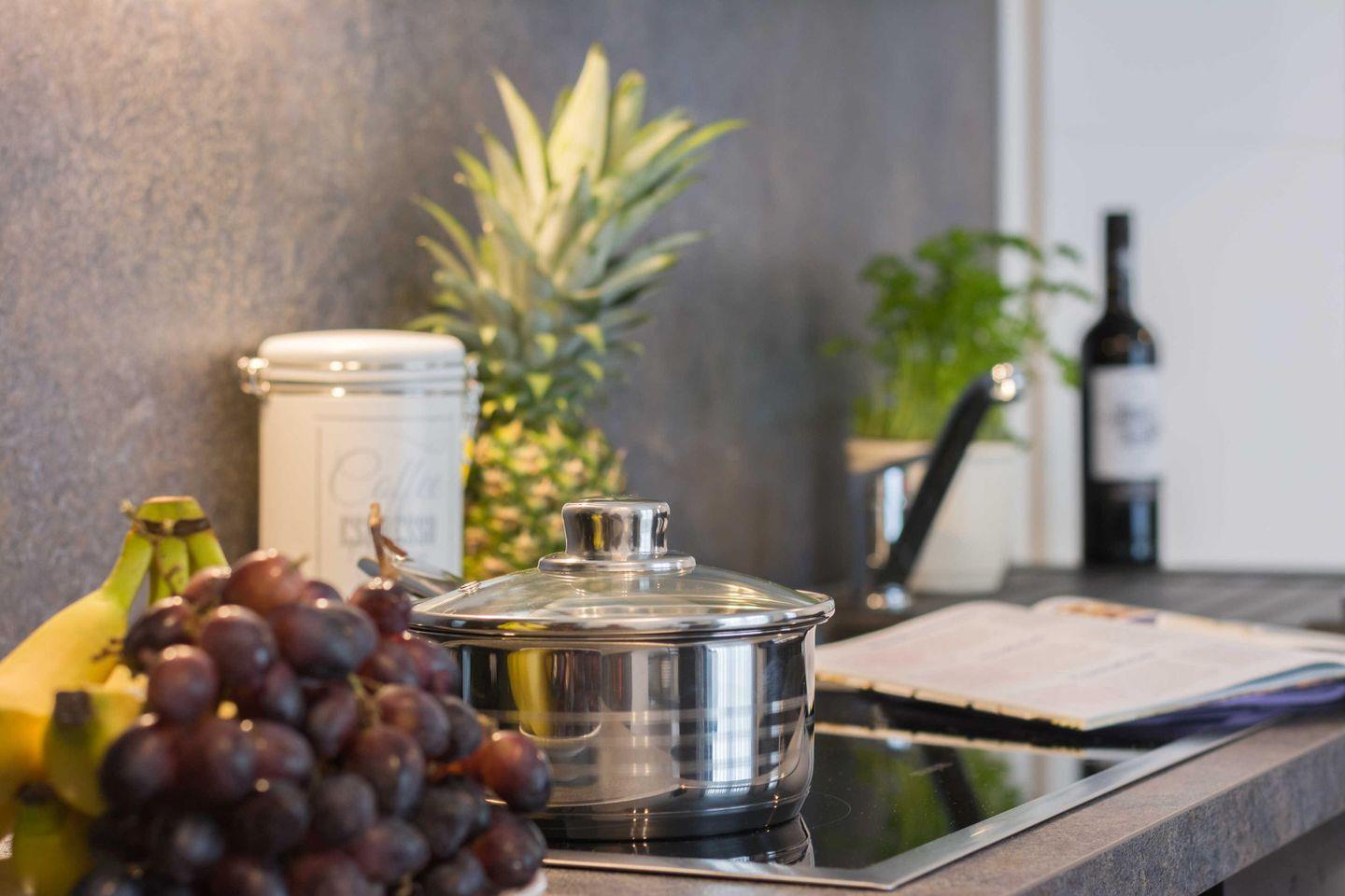 bietet Mikrowelle, Backofen, Geschirrspüler und Kühlschrank inklusive