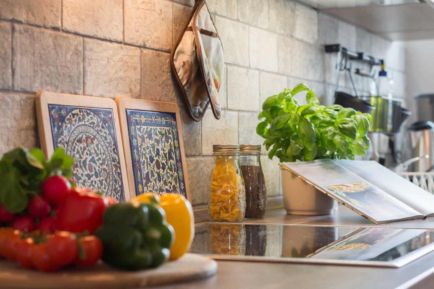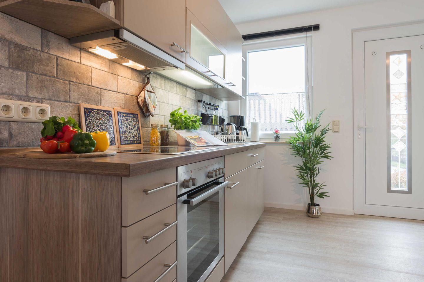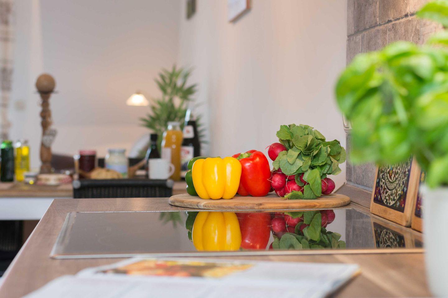 einen Herd mit Ceranfeld verfügt. Die Küche ist zudem mit elektronischen