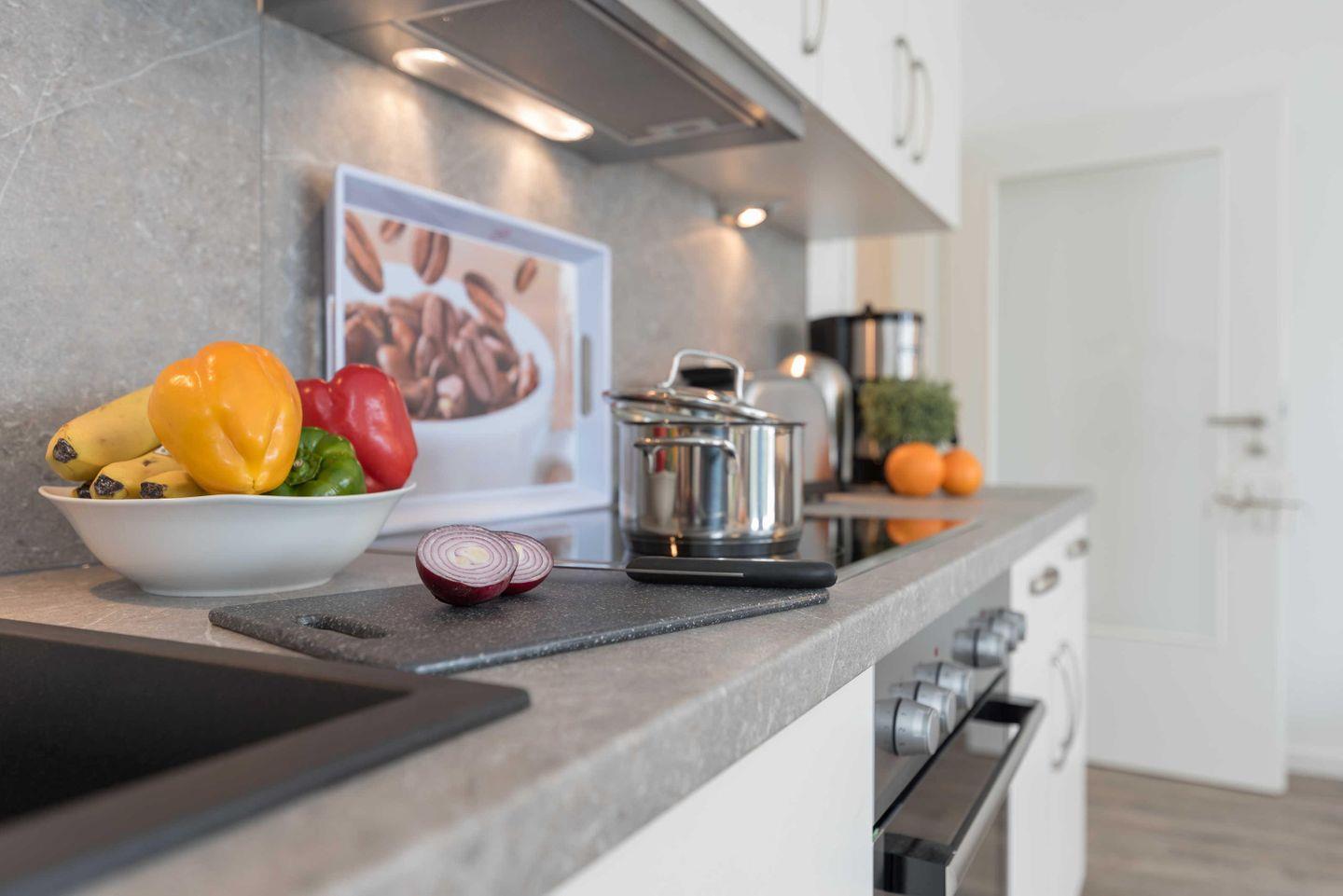 Die hochwertige, moderne Einbauküche verfügt über einen Geschirrspüler, einen
