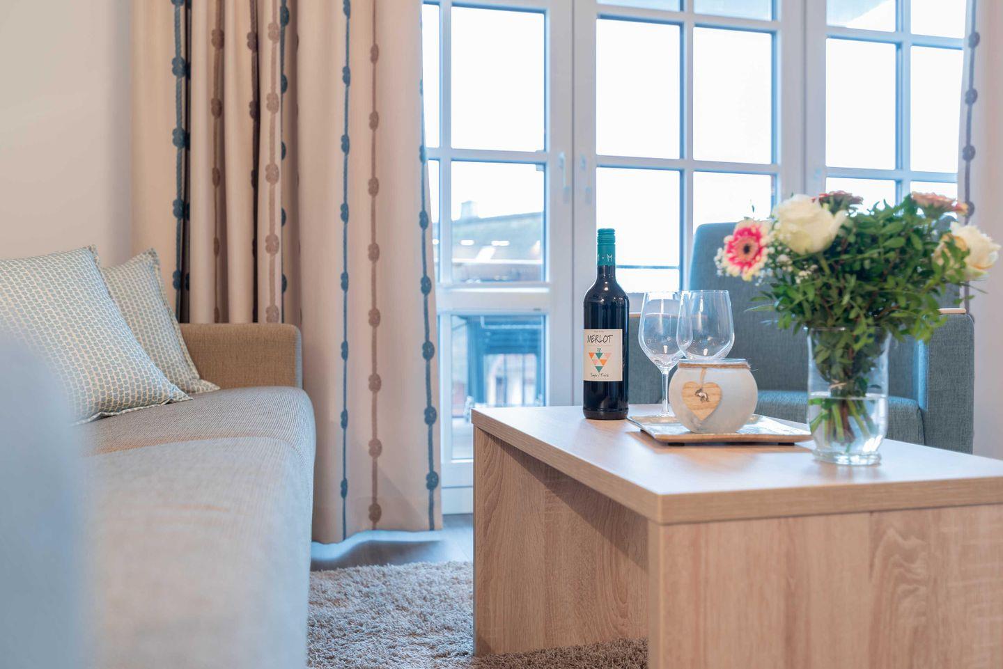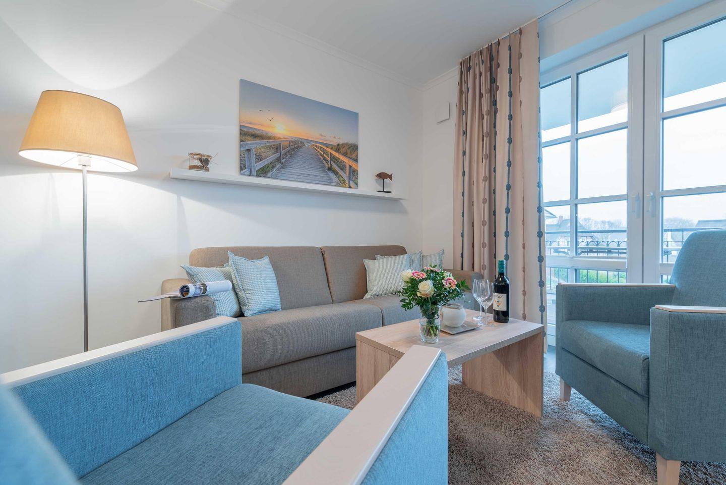 Entspannen und Verweilen ein. Der Wohnbereich mit Zugang zum Balkon ist hell und
