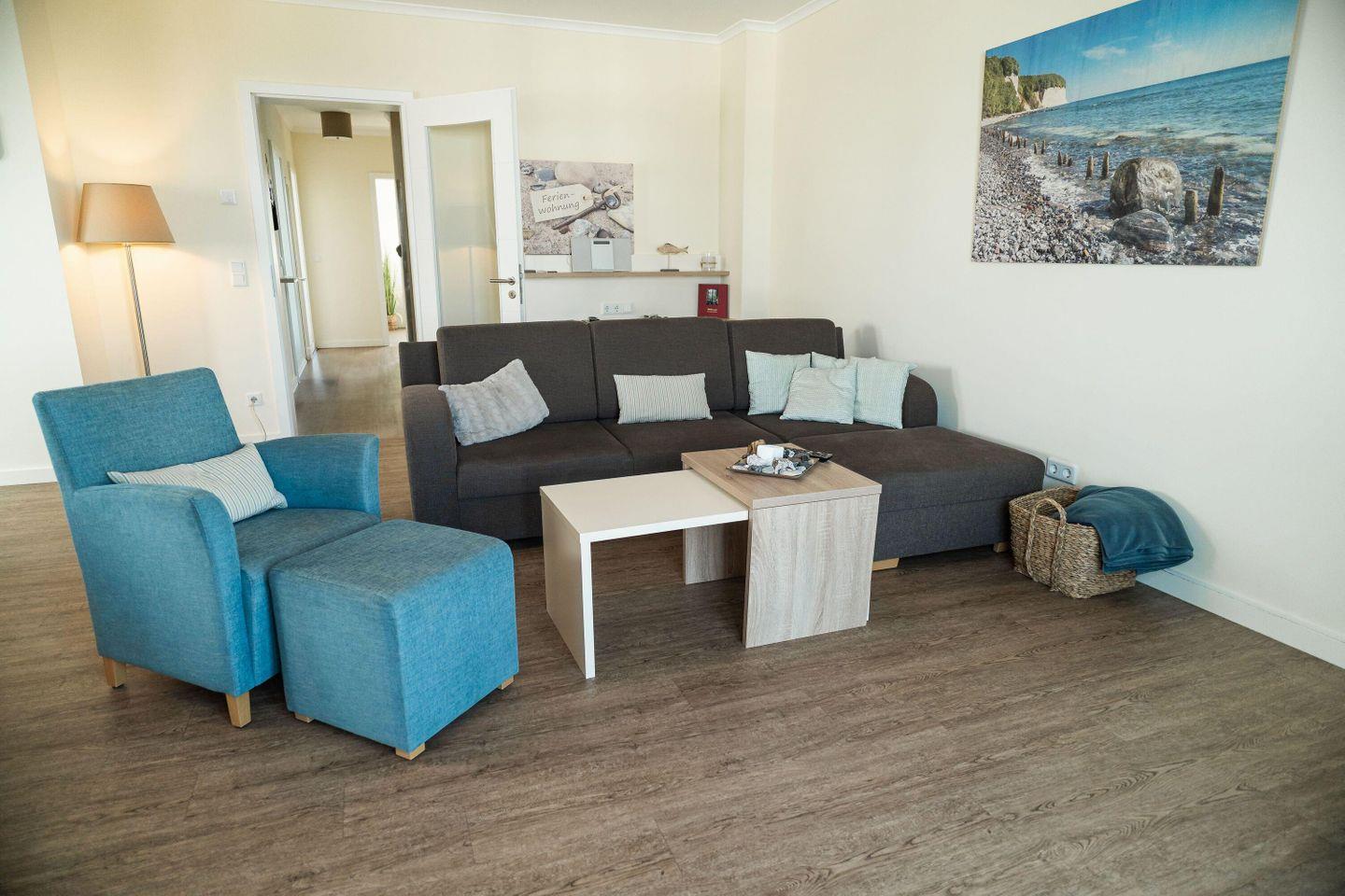 gemütliche Couch mit TV und einer kleinen Leseecke zum Wohlfühlen ein. Im