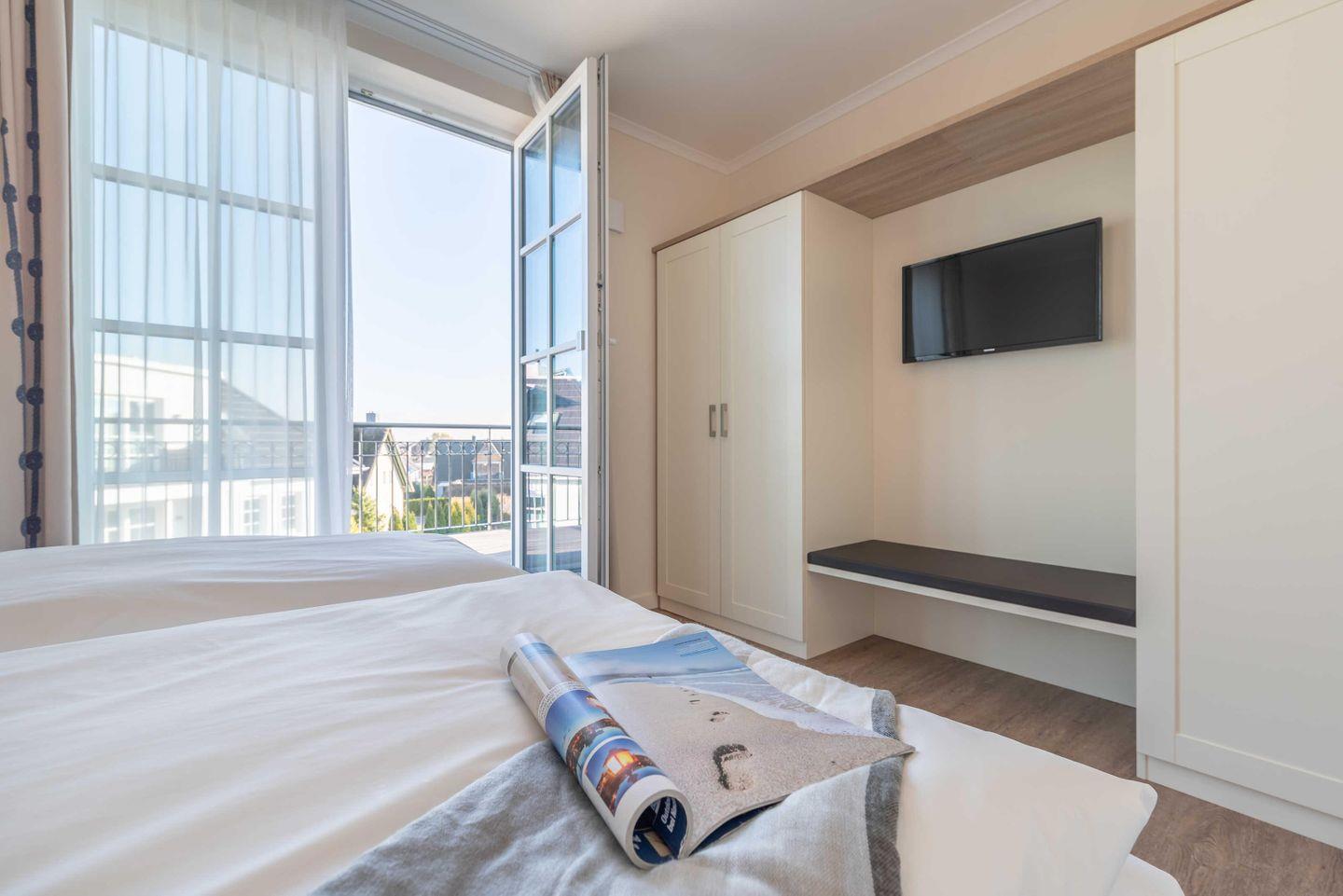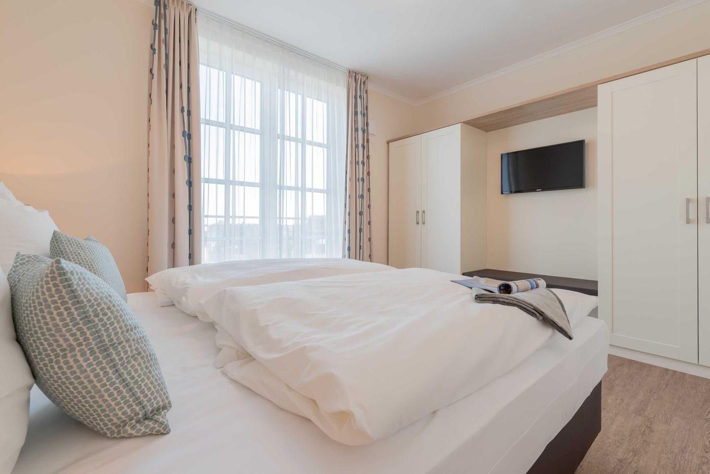 mit Doppelbett, zwei Kleiderschränken und TV. Als kleines Highlight betreten Sie
