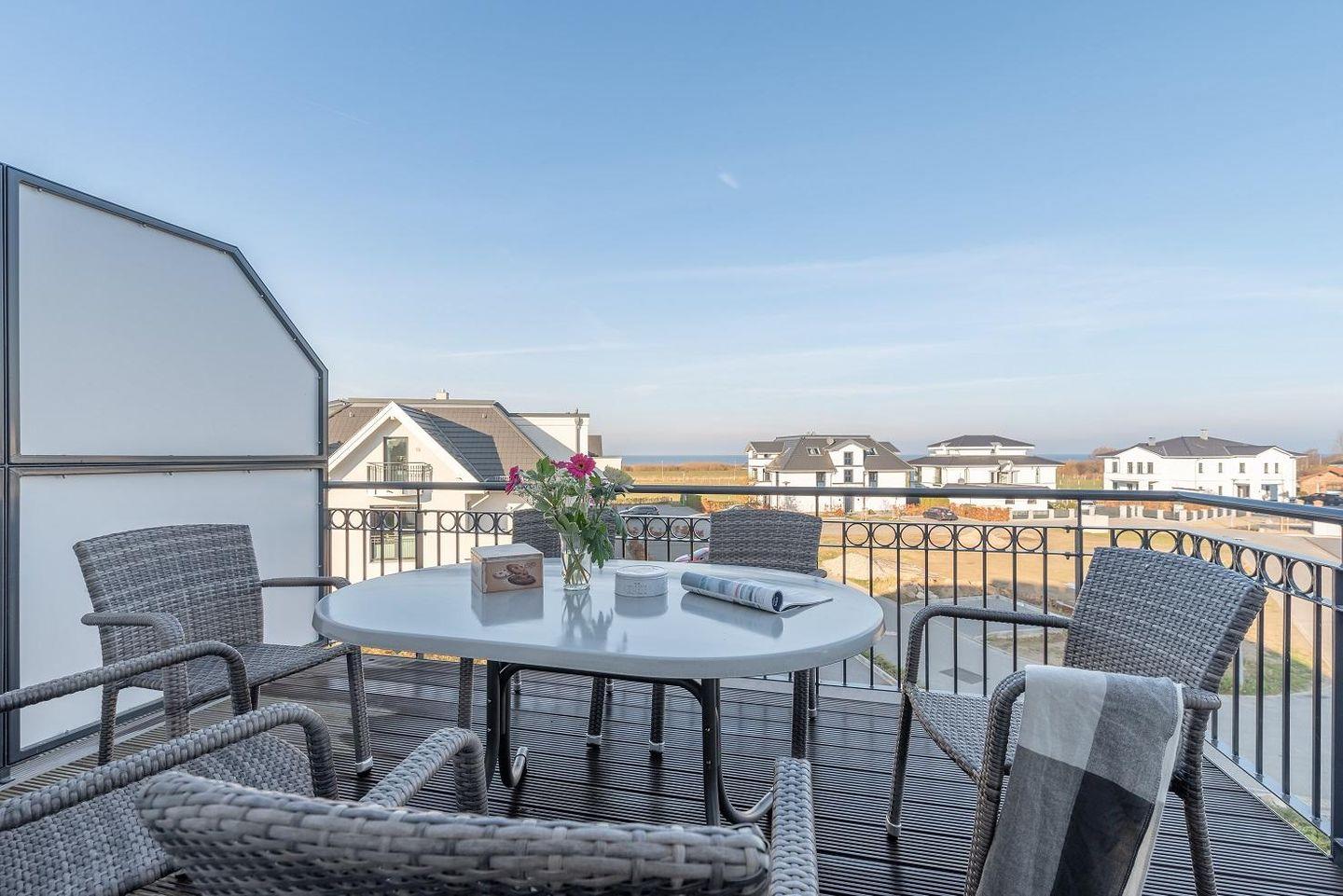 Wohnzimmer aus betretbare Dachbalkon bietet einen schönen Blick zur Ostsee und