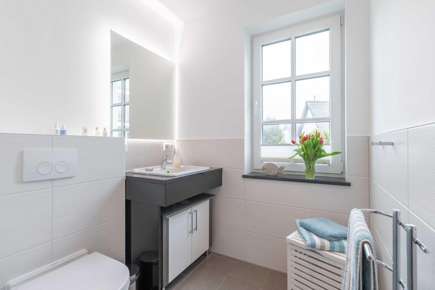 großem Spiegel, ein Fön und ein Kosmetikspiegel gehören zur Ausstattung.