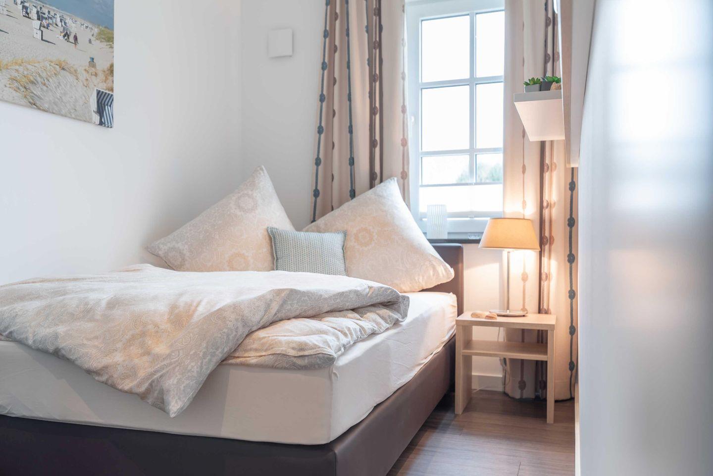 x 2,00 m, einen Kleiderschrank, einen Nachttisch sowie Wohlfühldeko.